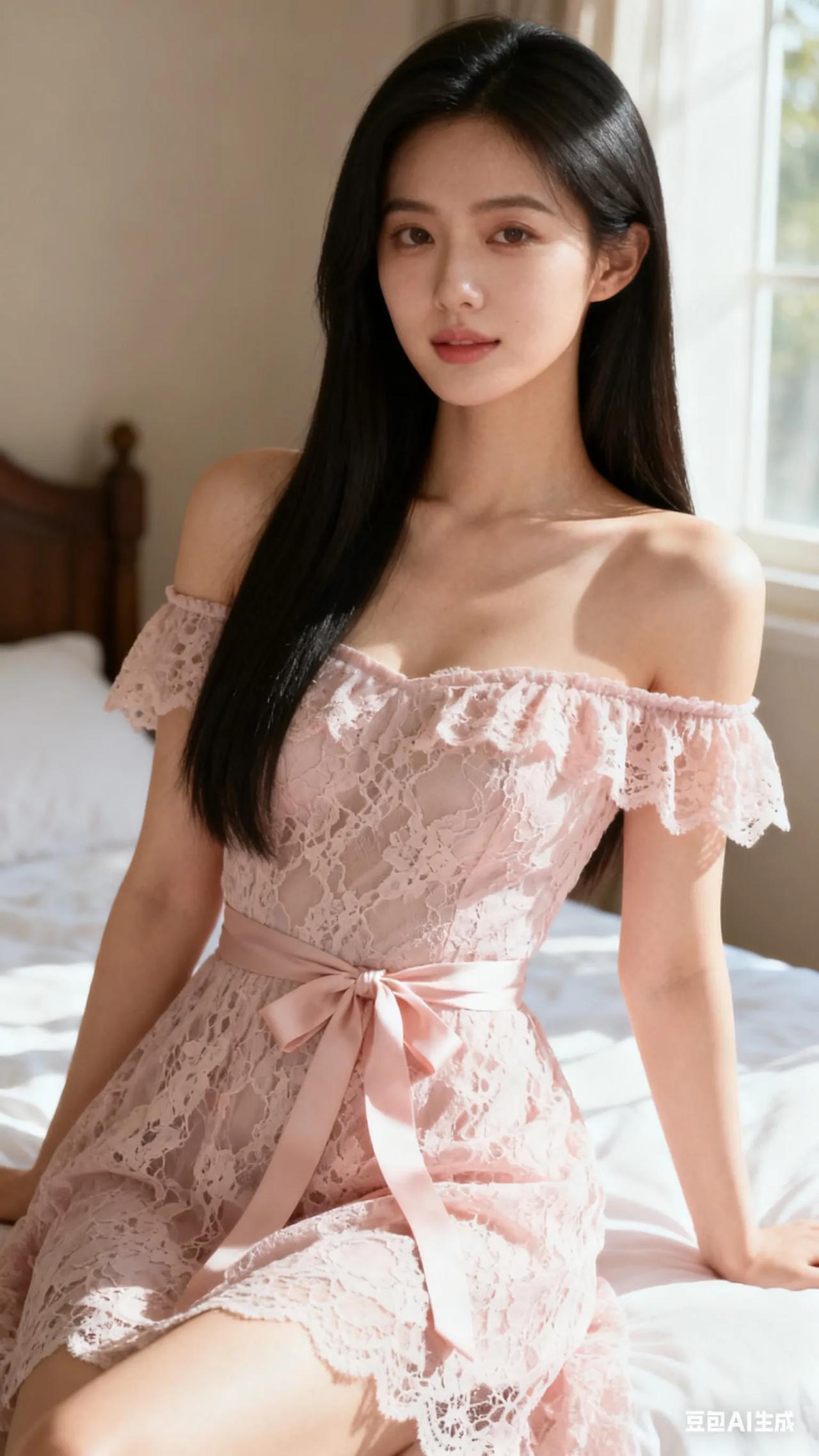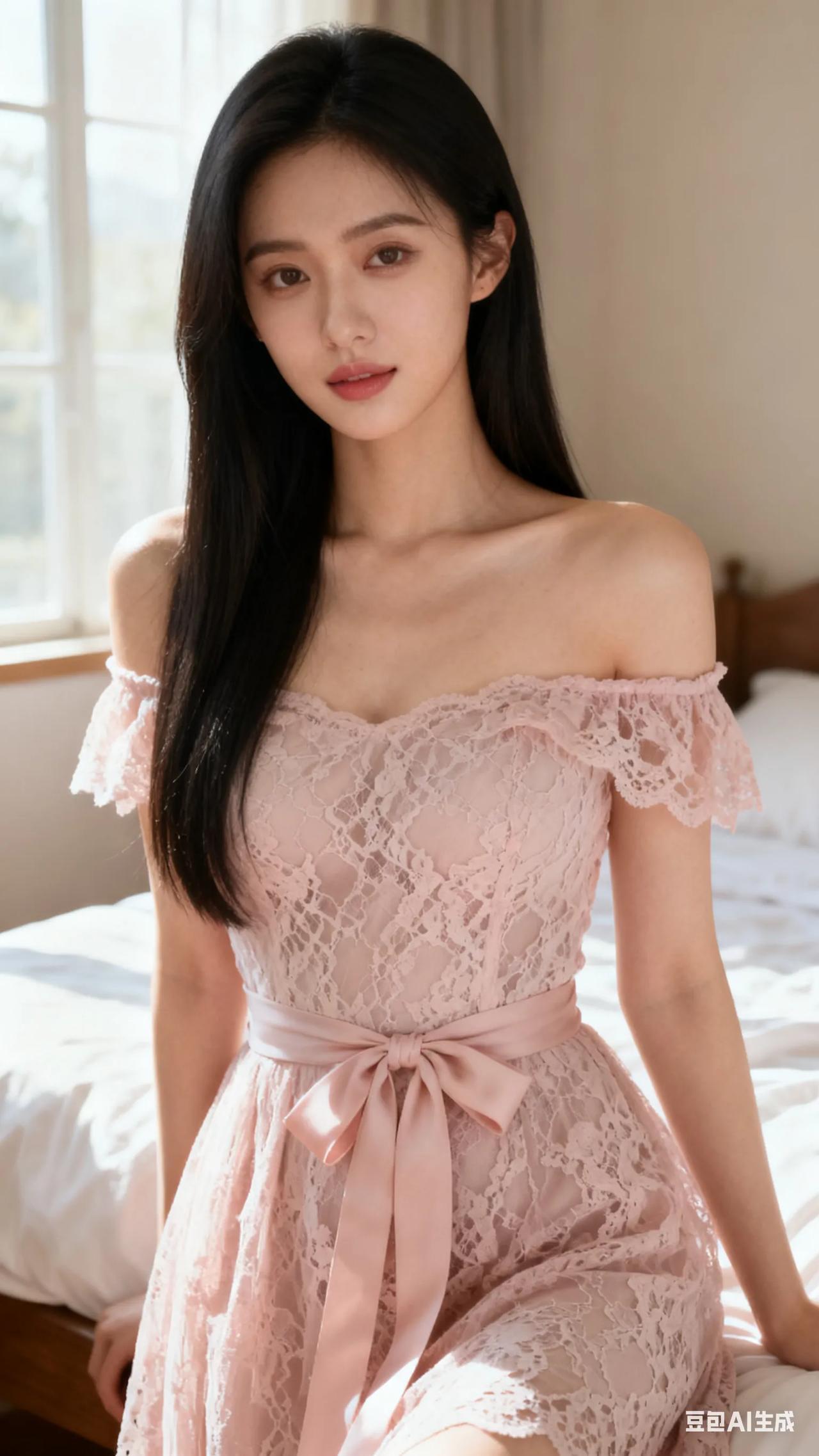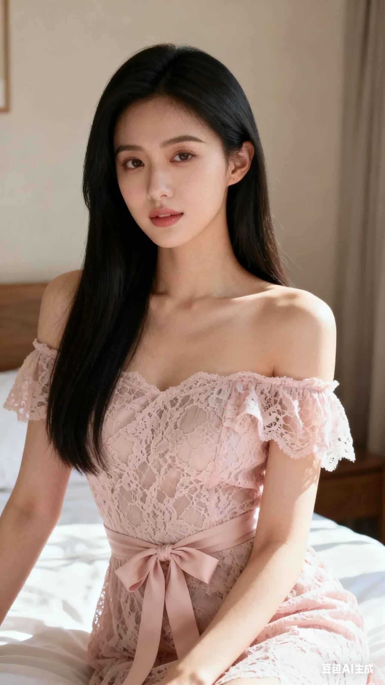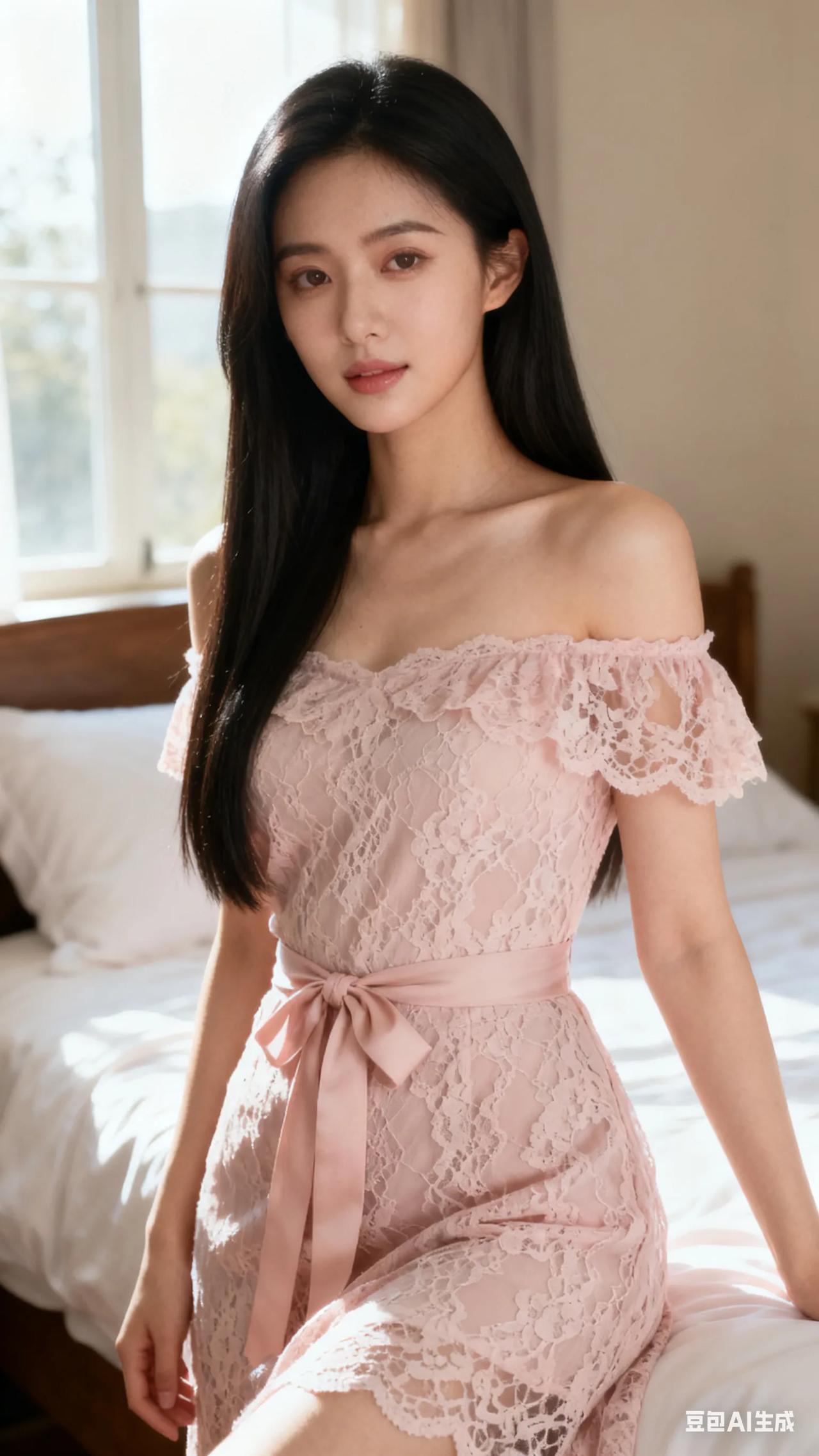 甜美少女风,粉色蕾丝连衣裙,温柔优雅,少女心满满!💖👗💕