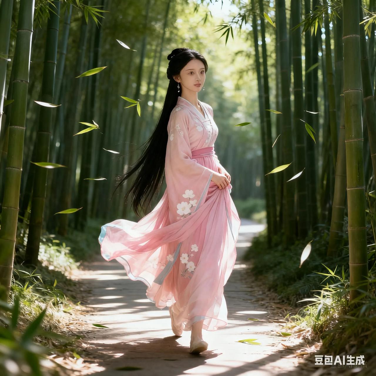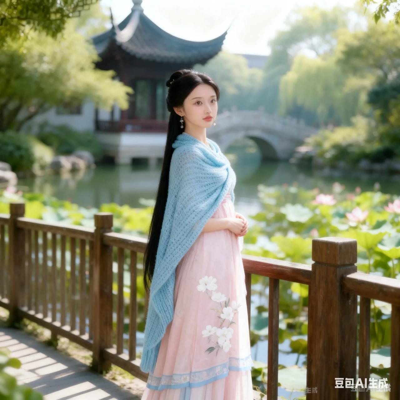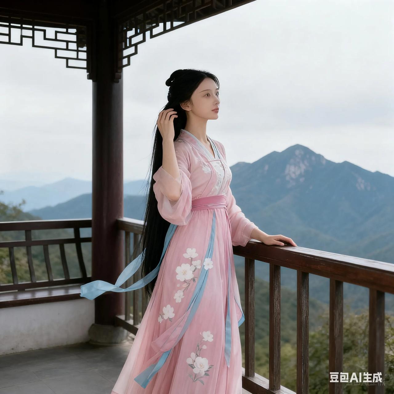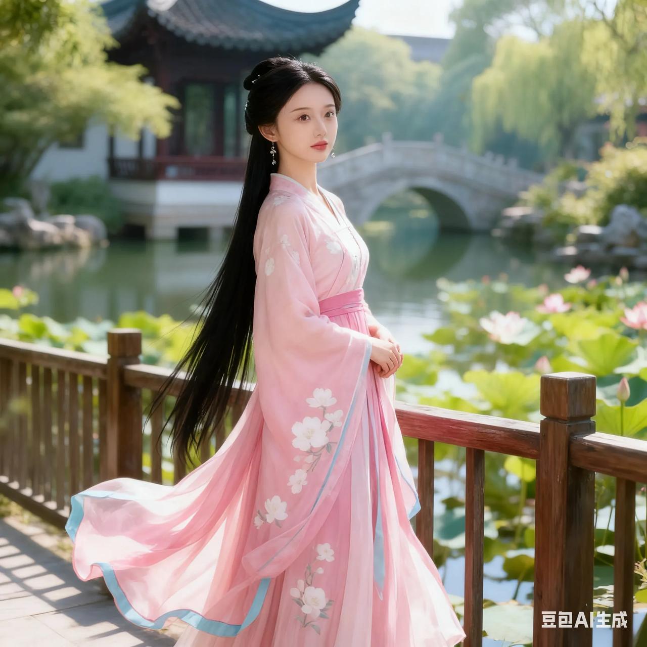 古典美人,粉裙飘逸,如梦如幻。