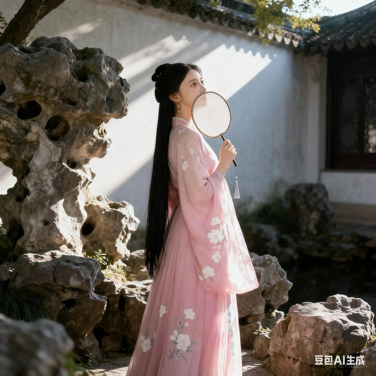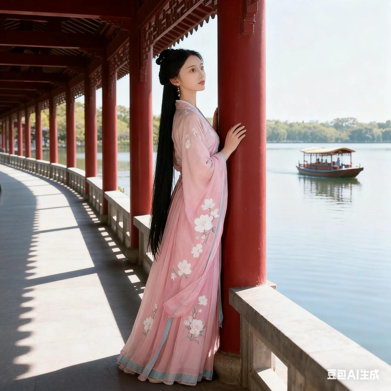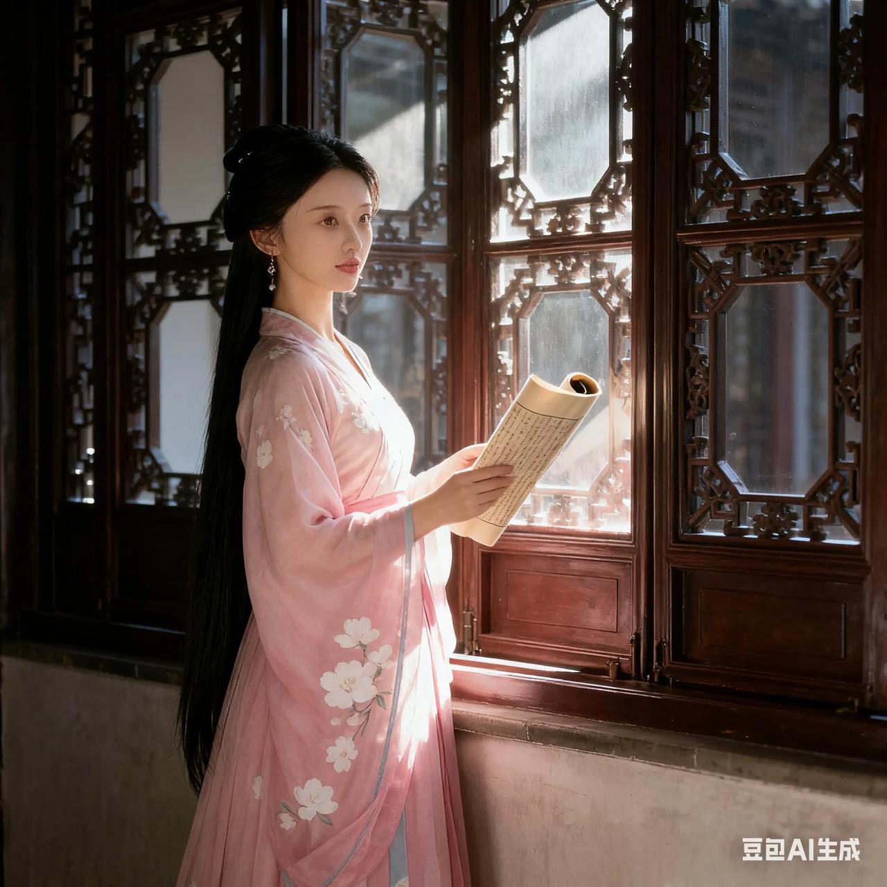 古典美人,粉裙飘逸,如梦如幻。