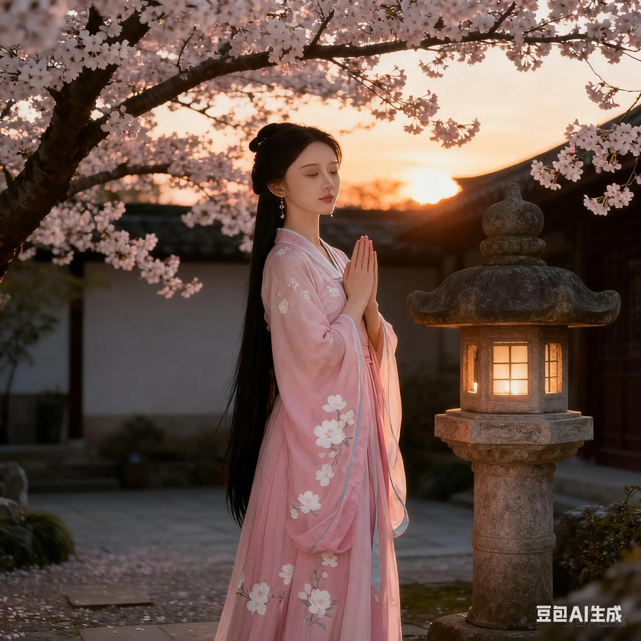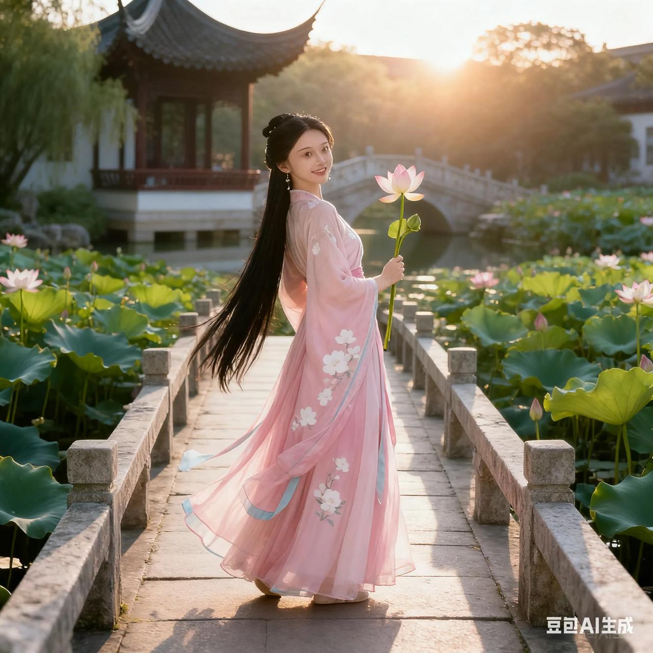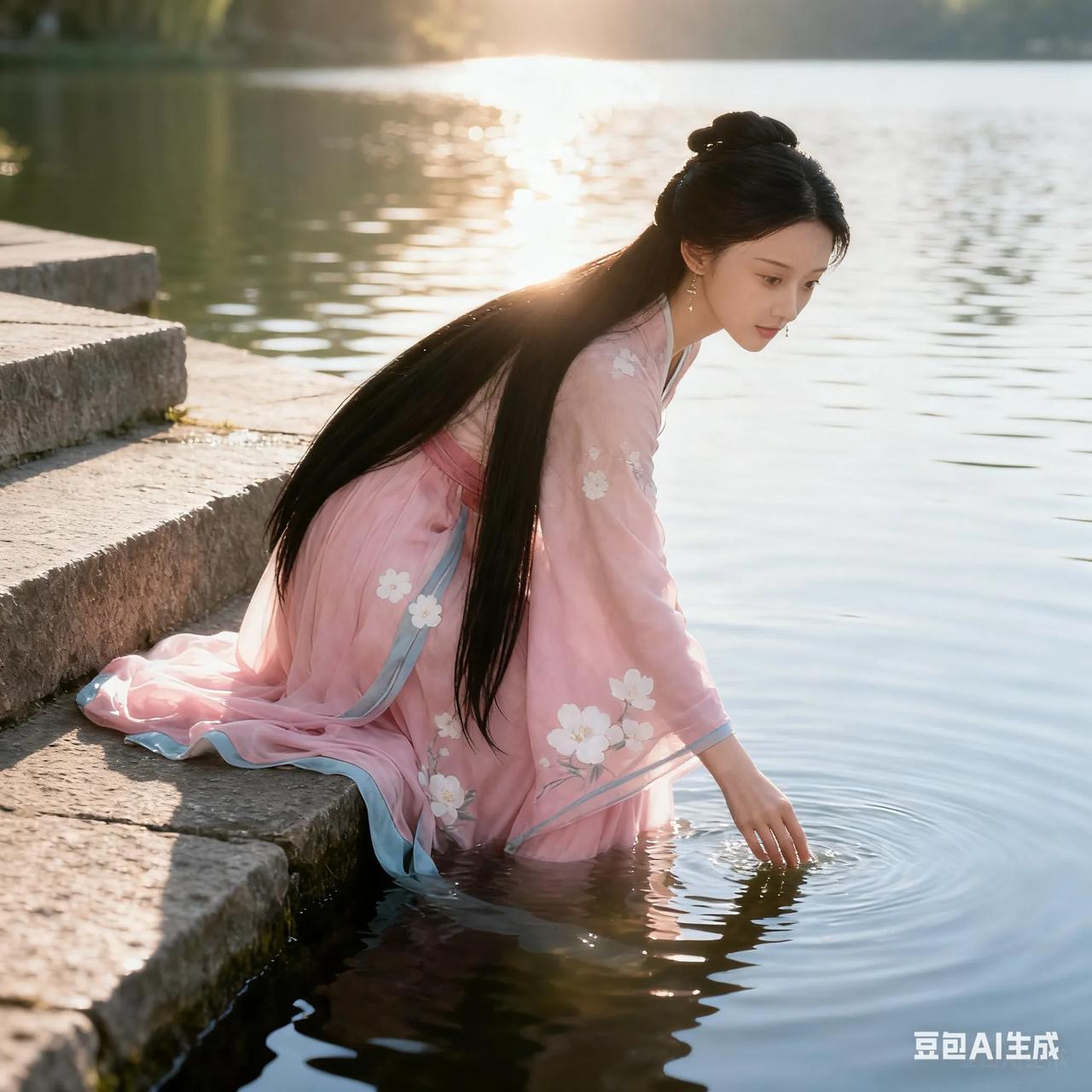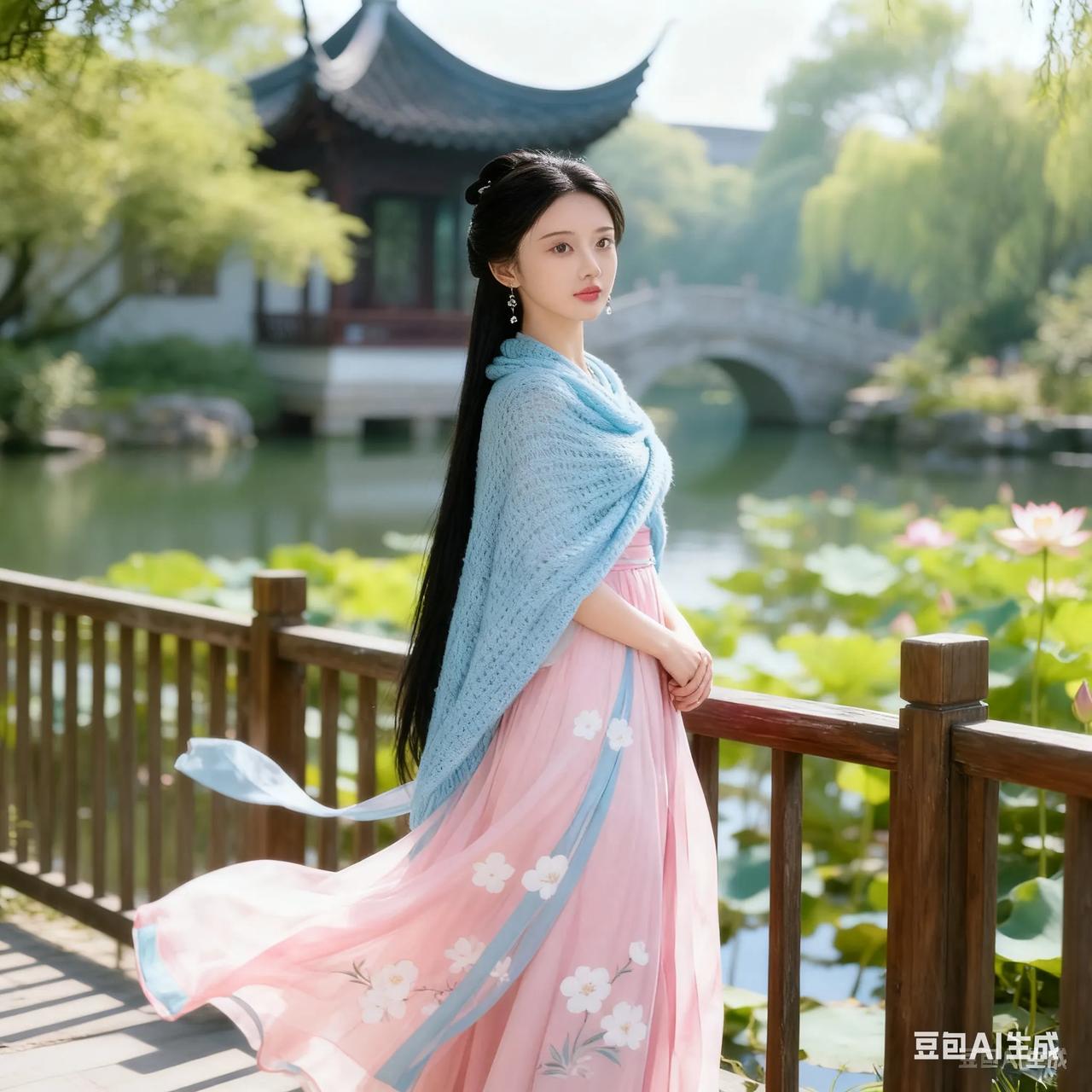 古典美人,粉裙飘逸,如梦如幻。