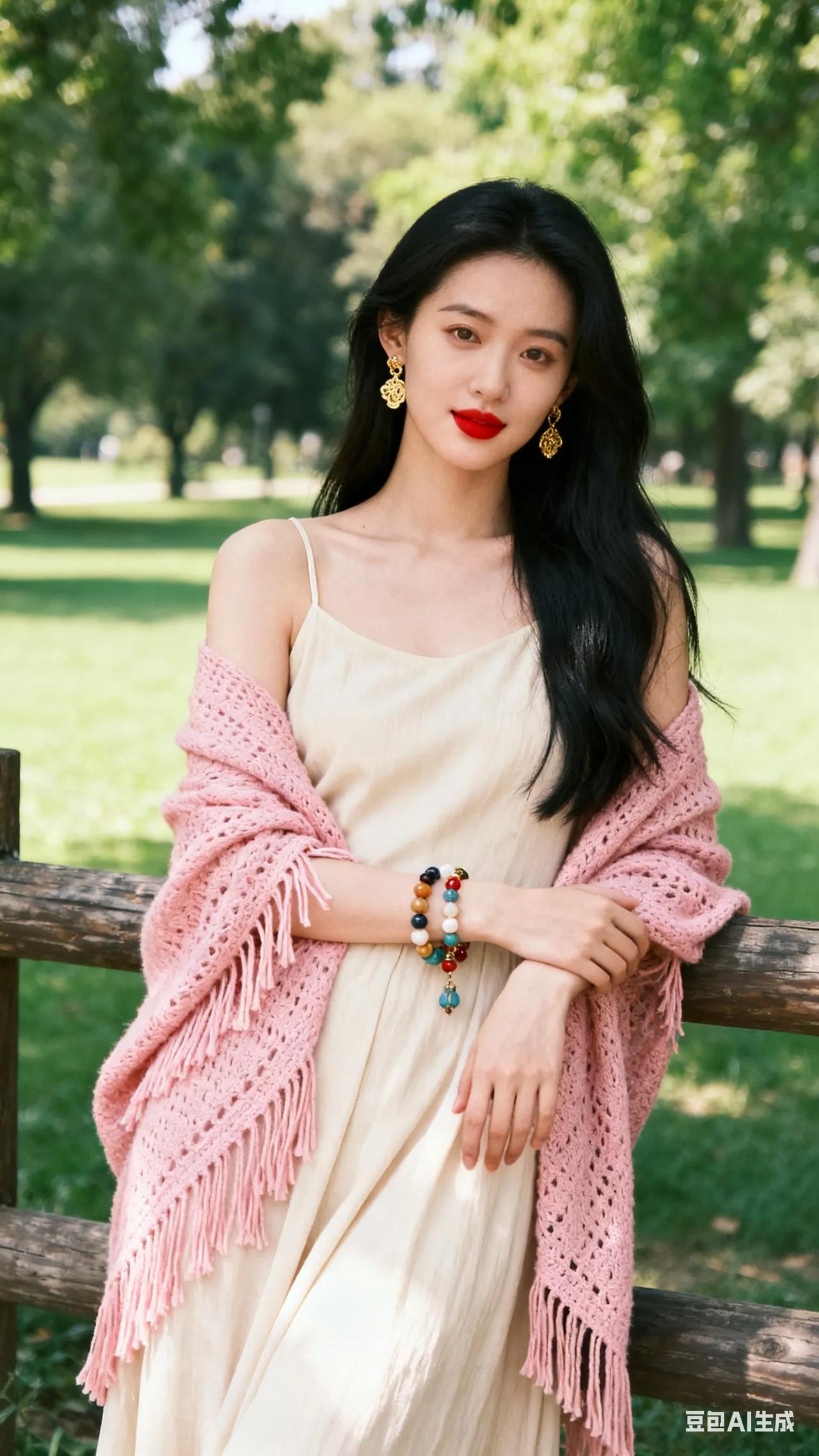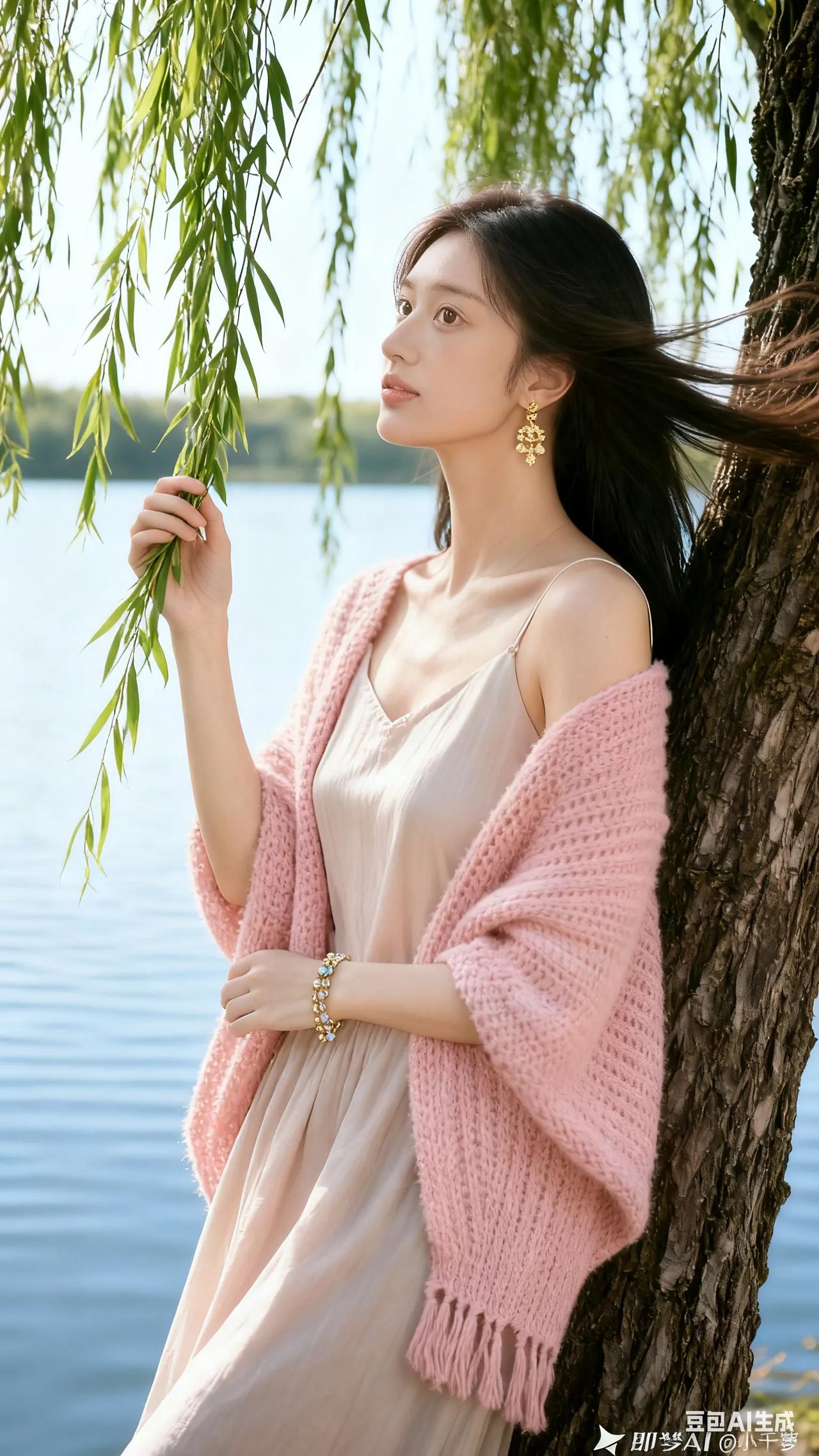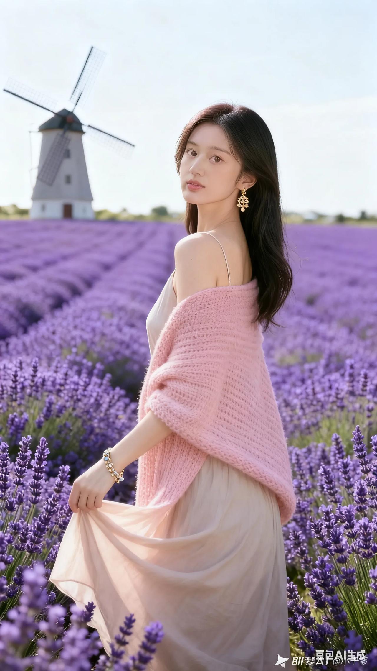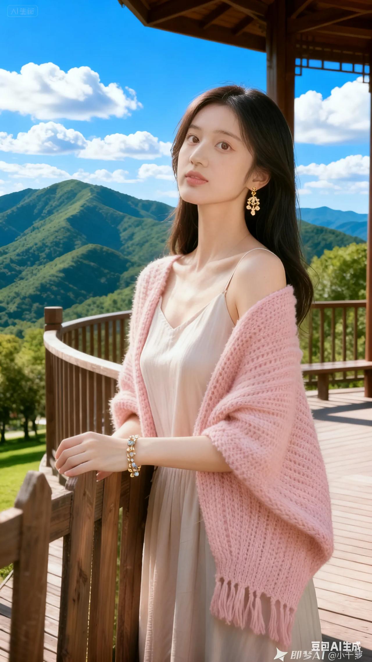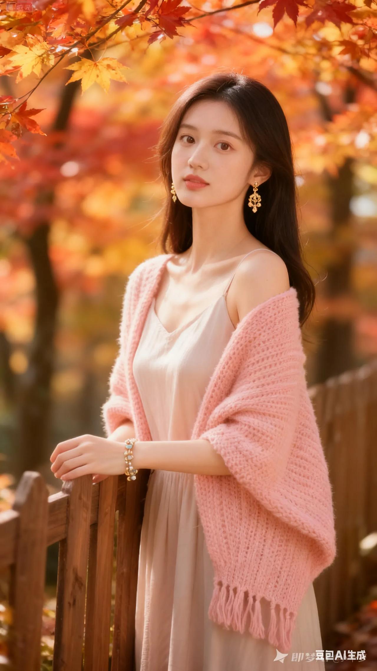 清新穿搭,粉色针织衫搭配米色连衣裙,尽显优雅与自然。