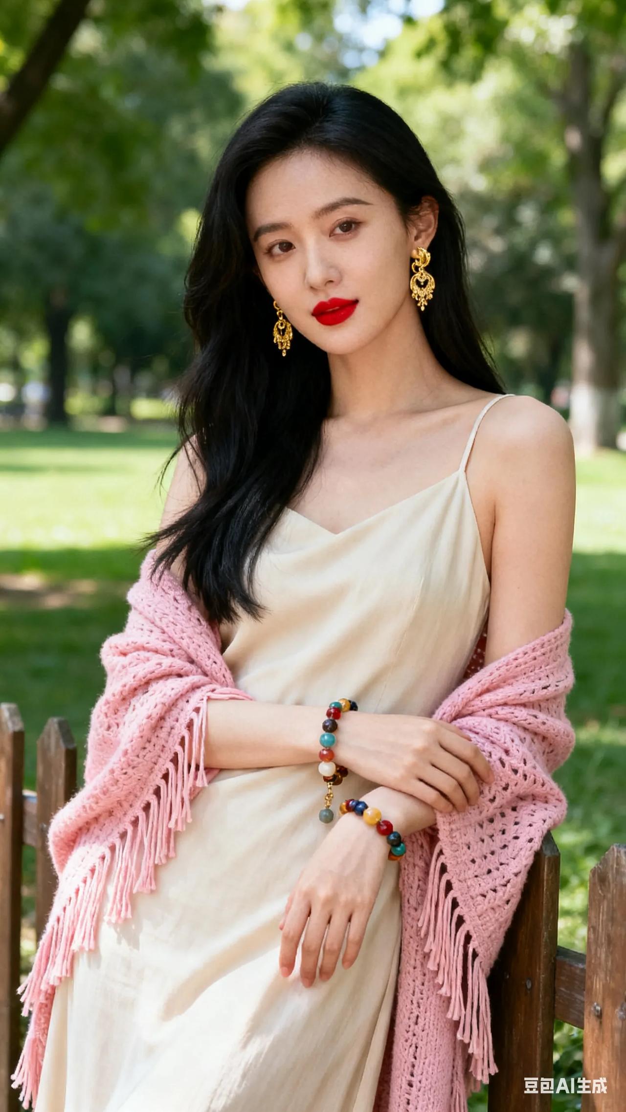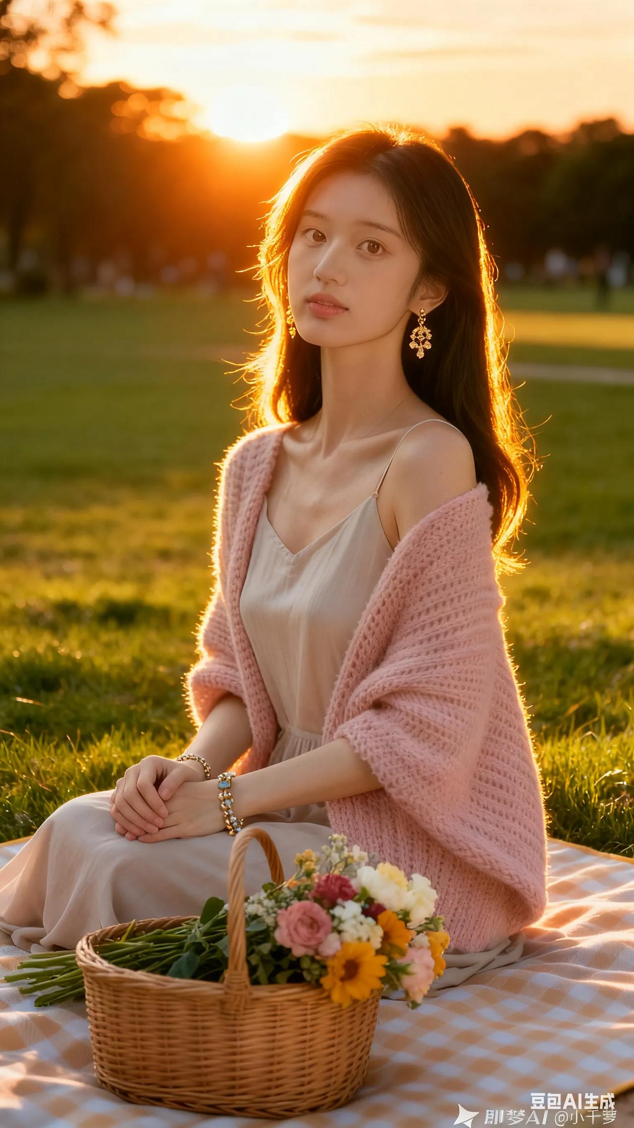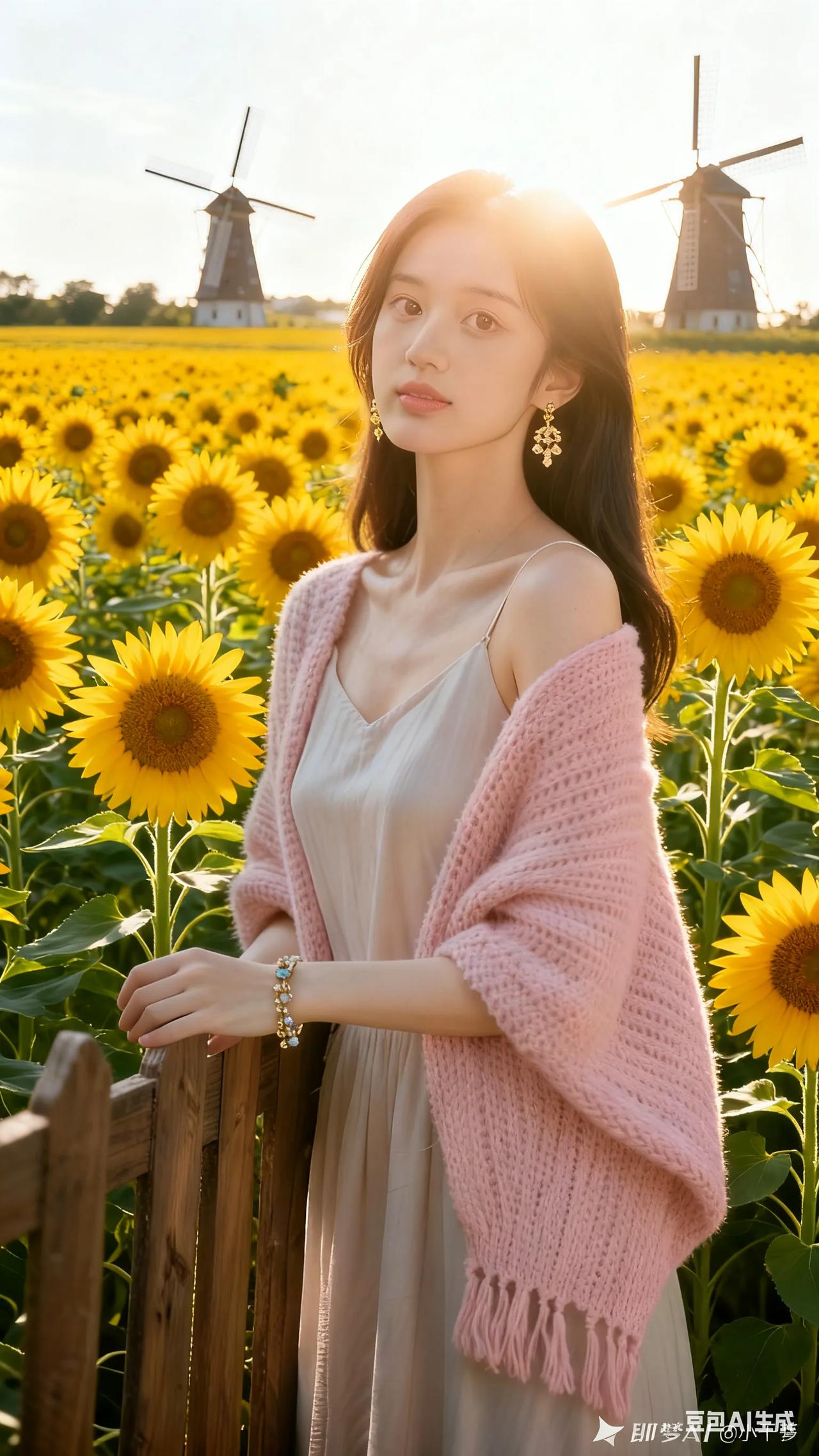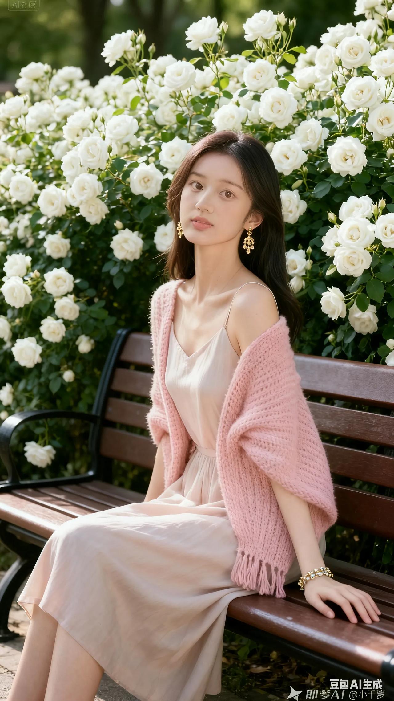 清新穿搭,粉色针织衫搭配米色连衣裙,尽显优雅与自然。