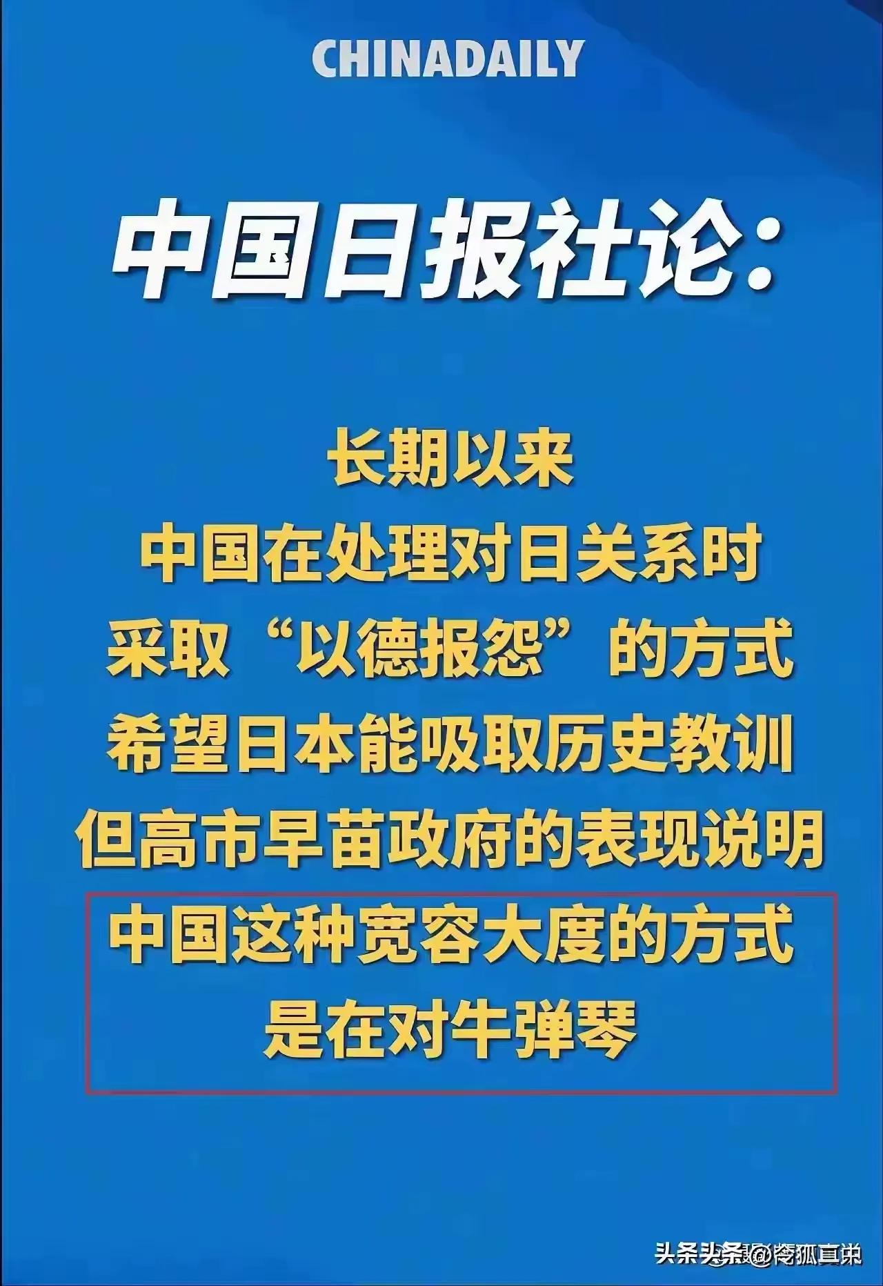 真欣慰!咱们终于不再对日本“以德报怨”当冤大头了! 老祖宗早说过“以德报怨,何以报德”,孔子压根不认同无底线宽容,主张“以直报怨”才是正道。可咱们掏心掏肺讲大度,高市早苗政府却蹬鼻子上脸,炒作“台湾有事”还搞对华经济反制,纯属对牛弹琴。 善良得带锋芒,宽容得有底线。不是要睚眦必报,而是别让善意变成别人拿捏我们的软肋。中日经贸能合作,但主权问题绝不能含糊,这才是真正的恩怨分明。