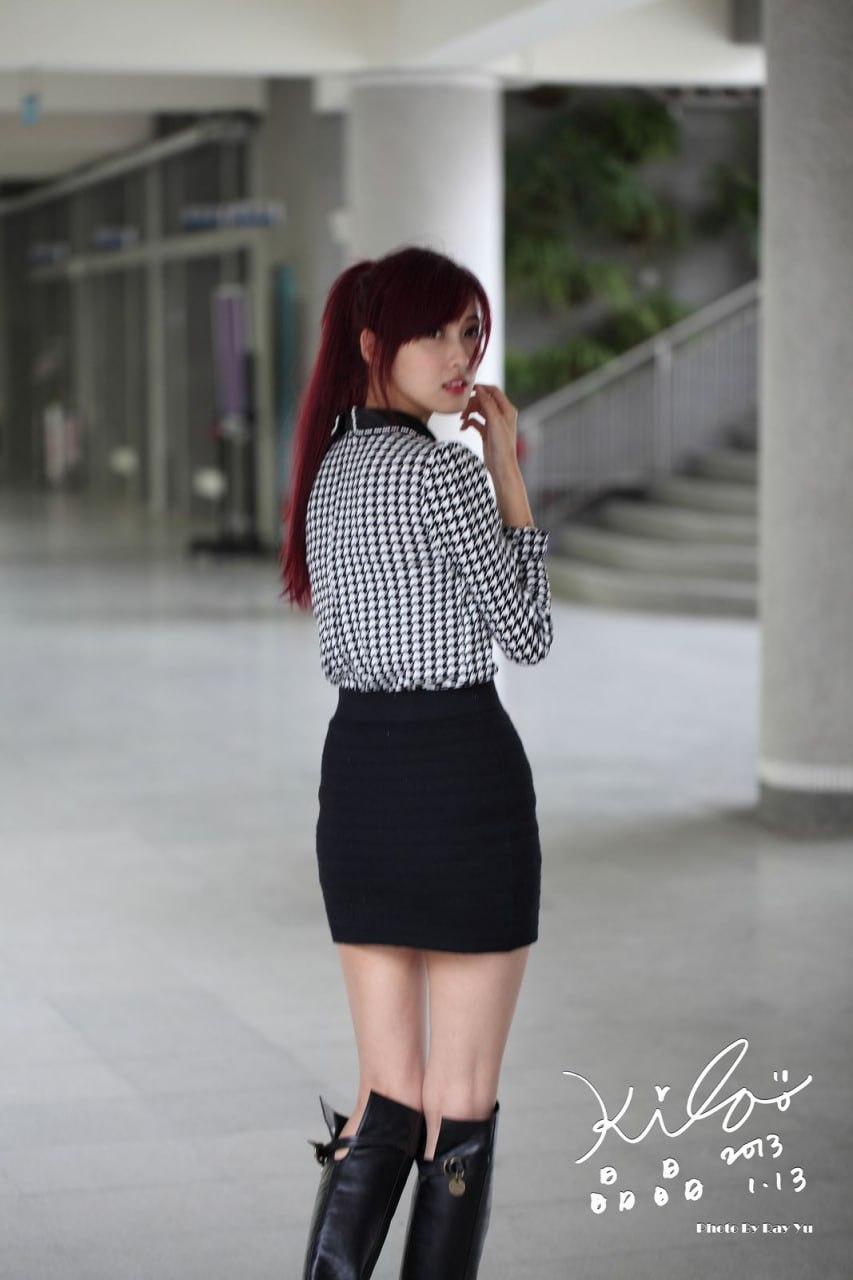 想成为最佳摄影师吗? 都市红发少女,时尚黑白格纹上衣搭配黑色短裙,自信满满!