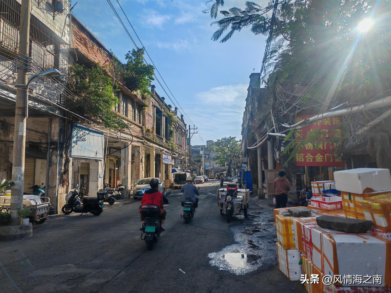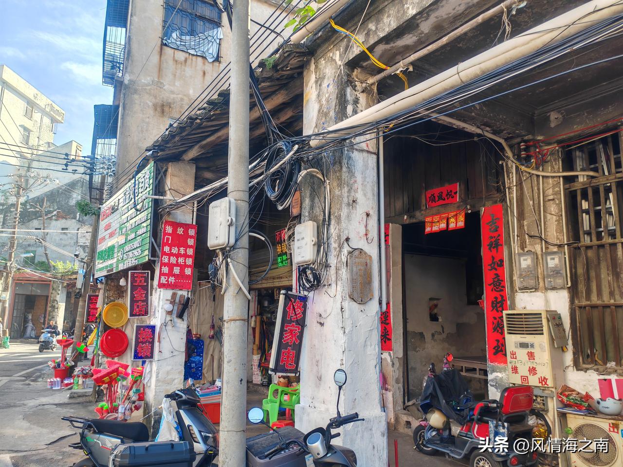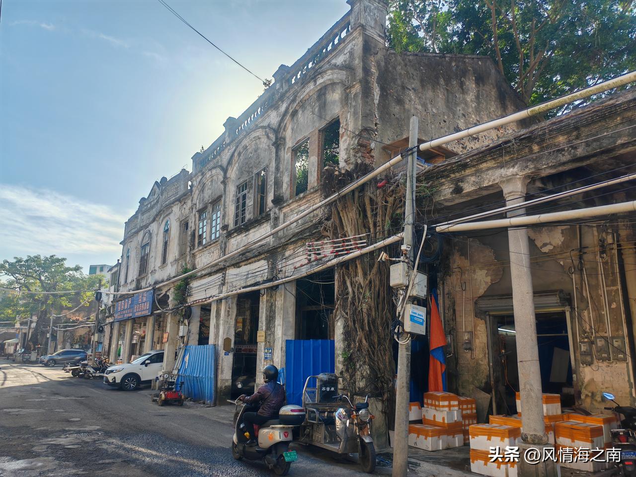 骑楼吗? 在海口去哪里看骑楼,大家都知道也一定会说去中山路、博爱路。那么我告诉你,若想体会骑楼的沧桑,历史的厚重感,若想感受那份浓浓的烟火气息,看看骑楼人家的日常生活,那笔者建议你还是从博爱北路水巷口拐进去,去小巷深处的振东街走走吧! 振东街有不加修饰遗留的历史痕迹,骑楼一般前面商铺后面或楼上住家,这里有曾经的大户人家豪宅,有和大榕树浑为一体的旧居,三三两两坐在家门口晒太阳打牌的老街坊,也有小巷居民的信仰北帝庙,小庙并不起眼,平凡的就像普通人家。 如今只有振东街这里才是“真正的”骑楼,保留着骑楼人家的生活方式,老街坊们守在陈旧破败的宅子里,过着悠闲自在的日子,没有那种纯纯商业资本打造的氛围。