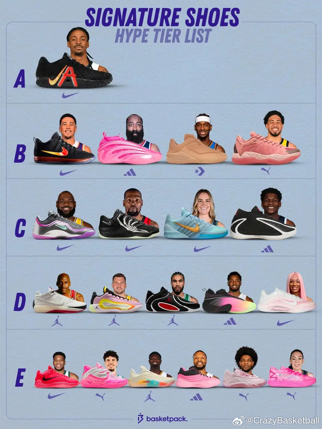 外网发布最新签名鞋热度榜单出炉,莫兰特的NIKEJa3霸占榜首
