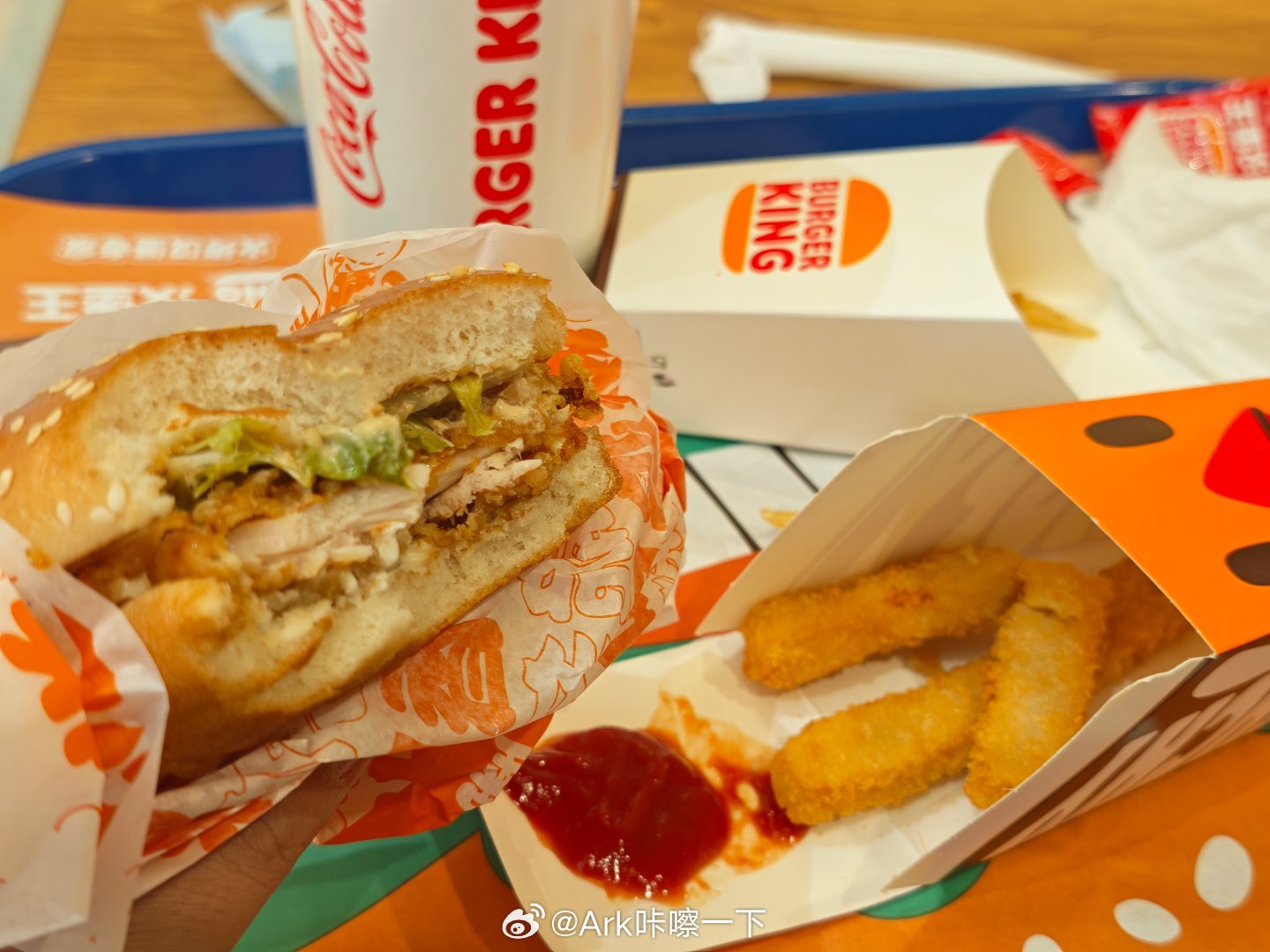 折腾一天,中午也没吃,到现在才吃上一口汉堡王,新出的脆鸡堡味道还不错