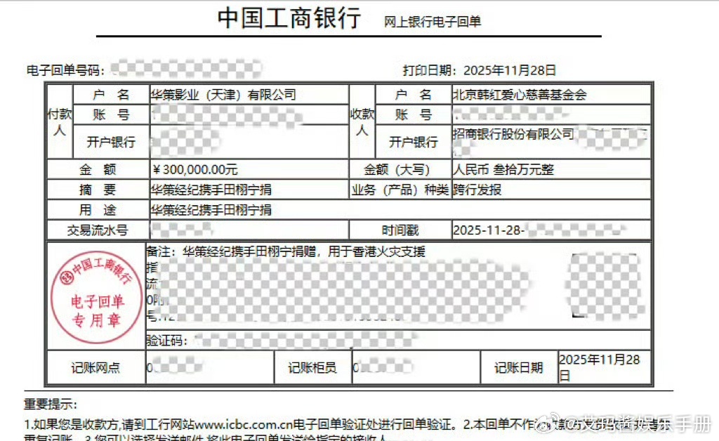 华策经纪携手田栩宁通过韩红基金会捐赠30万元