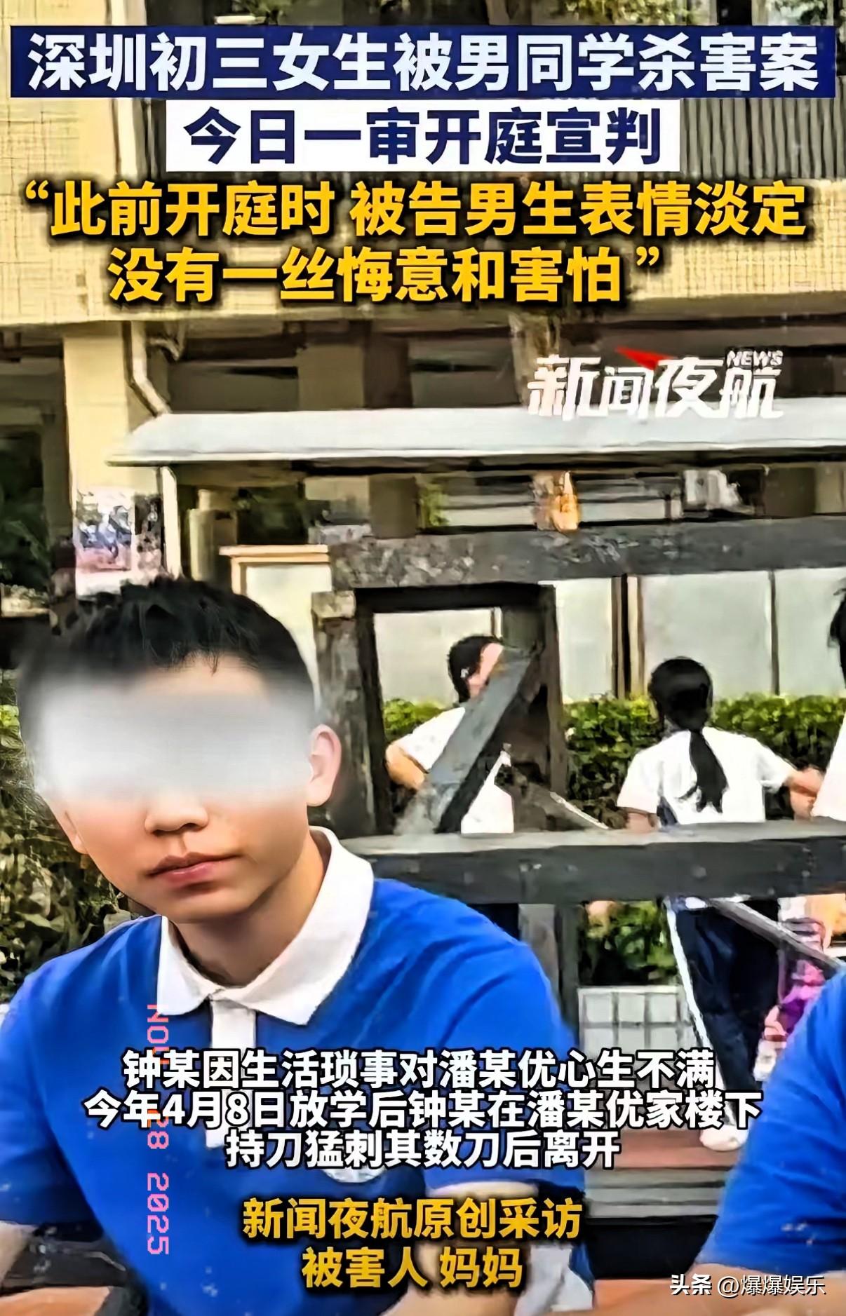 最近深圳14岁少年钟某某杀人案的判决,让不少人直呼大快人心。钟某某因无端猜疑不满同班同学潘某某,提前买好折叠刀,在对方家楼下多次捅刺致其死亡,行凶前还特意查了14岁杀人的后果。最终法院一审判处他无期徒刑,剥夺政治权利终身。 这事儿想想就气,明晃晃的预谋犯罪,还想着靠年龄钻空子,简直毫无底线。被害女孩才14岁,一条鲜活的生命没了,家属得多痛心。无期徒刑看似是顶格处罚,但大家心里都堵得慌,就怕日后有减刑机会,这样的罪犯再出来危害社会。 法律对未成年人的宽容,从来不是犯罪的免罪金牌。这个判决既是给受害者一个交代,也是给所有家长敲了警钟。你们觉得对这类低龄恶性犯罪,该怎么杜绝才好?