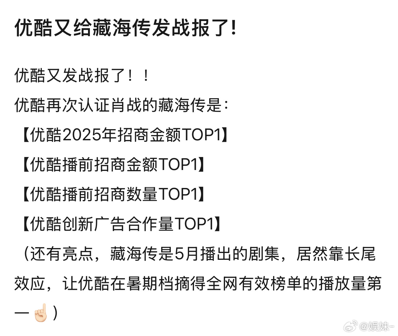 优酷藏海传战报优酷今天发两次!我要超过👖我发三次也就是说藏海传广告时间没那么长