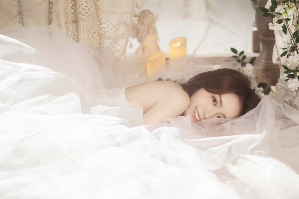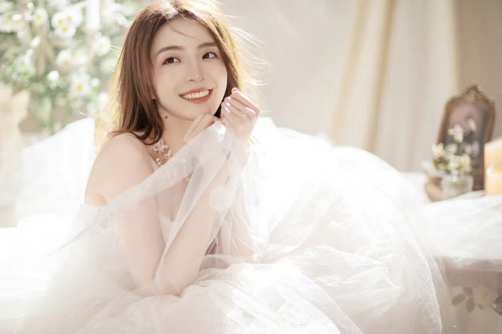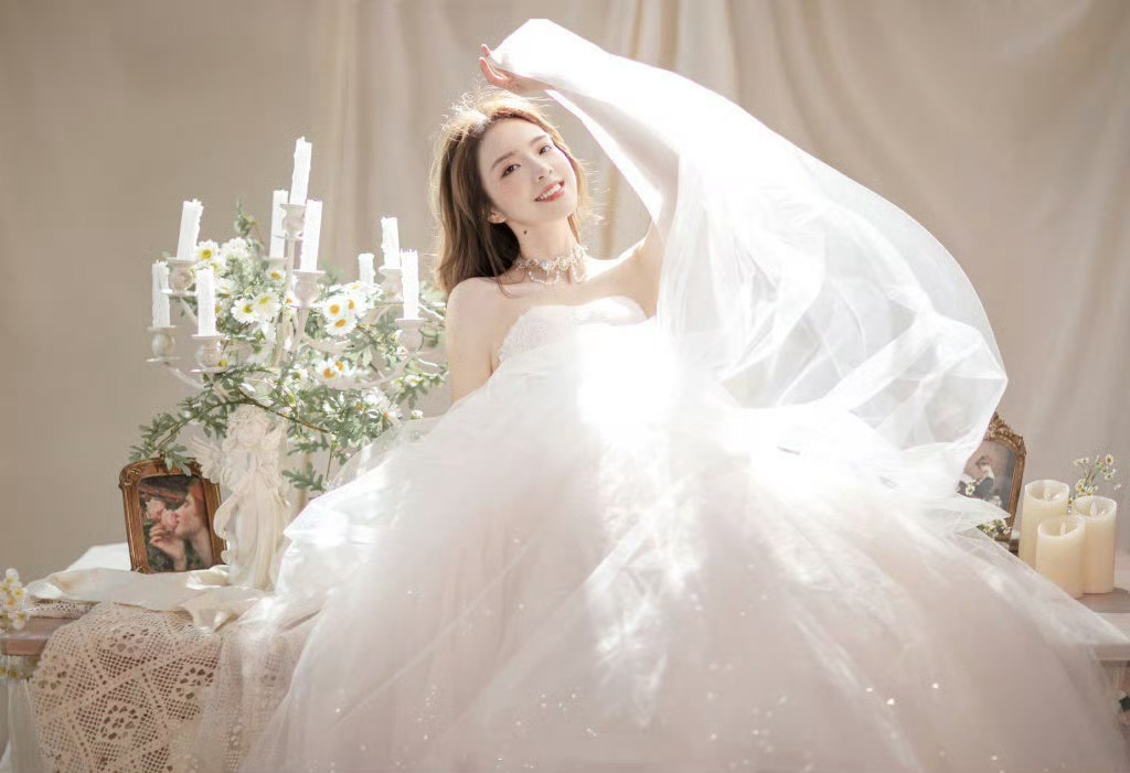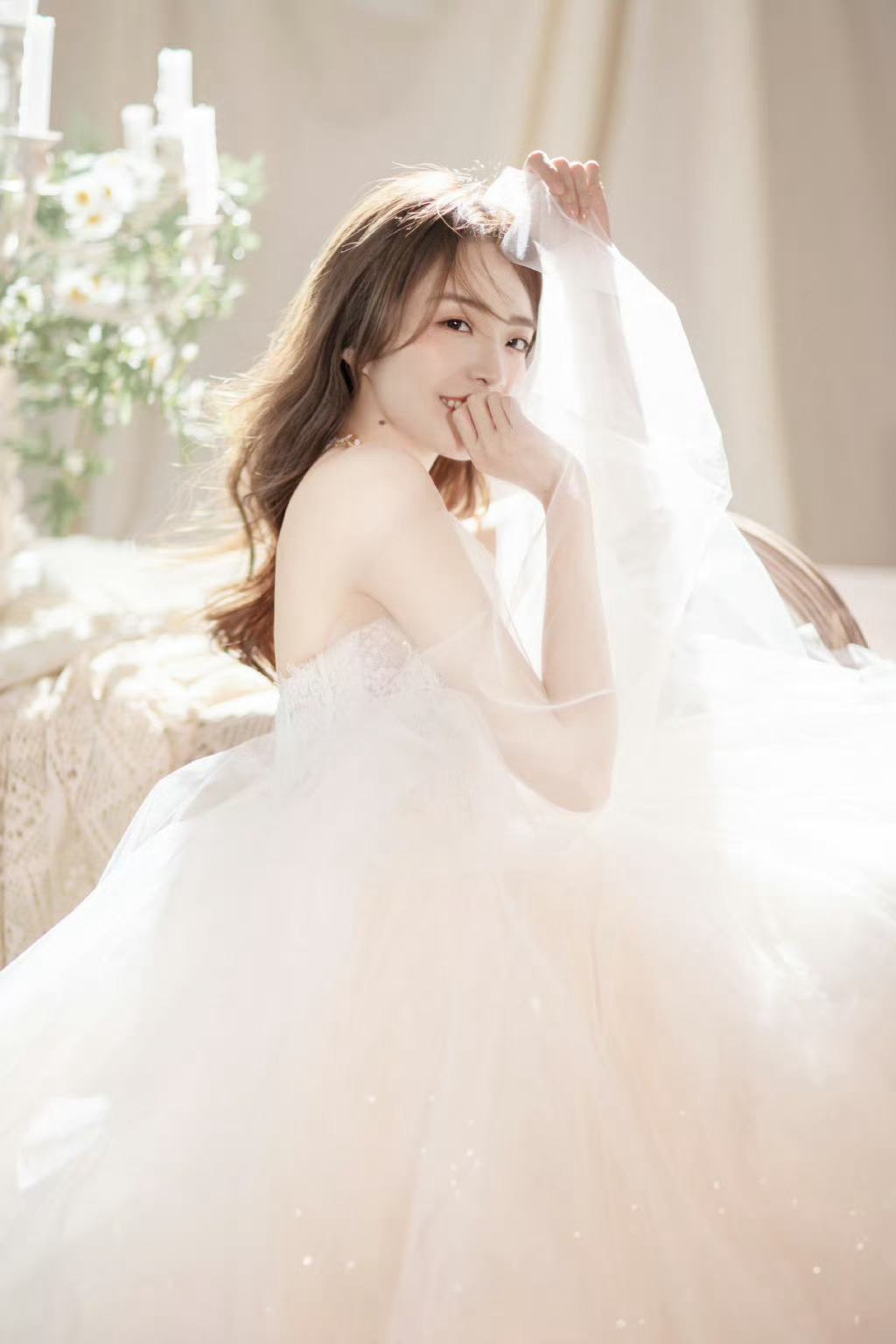 余霜拍婚纱大片,一袭白纱裙如梦似幻,是少女想要的样子