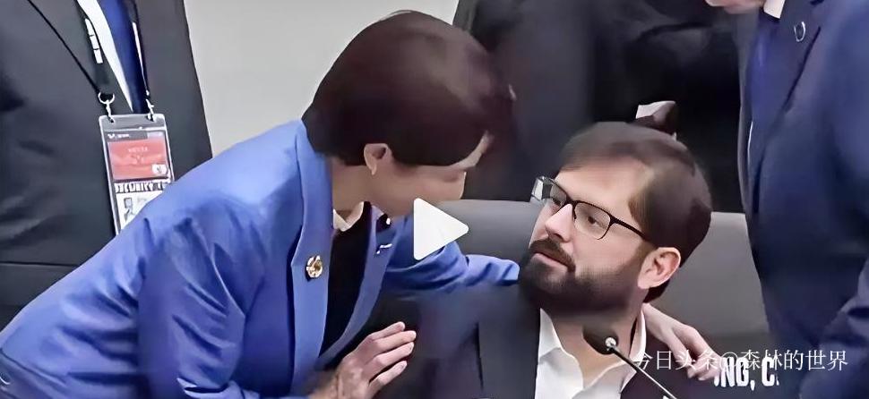 2025年首尔APEC现场,日本首相高市早前一天刚滑着会场座椅“漂移”到印尼总统普拉博沃身边唠嗑,把对方整得措手不及;第二天又直接俯身扒住智利总统博里奇的肩膀,脸贴脸输出,博里奇那“身体后仰但嘴角硬扯微笑”的表情,完美诠释了“外交场合的礼貌性尴尬”。这波“贴贴式外交”直接冲上日推热搜,日本网友锐评:“她怕不是把国会的‘凑过来吵架’技能,点成了‘凑过来唠嗑’”。更绝的是博里奇后续还发社交动态“恭喜首相”,主打一个“国际礼仪拉满”。 毕竟在正经的APEC会场,别人都在正襟危坐谈合作,只有高市早苗忙着“解锁座椅新用法”,这社交强度,连会场工作人员都得偷偷给她的椅子加润滑油。