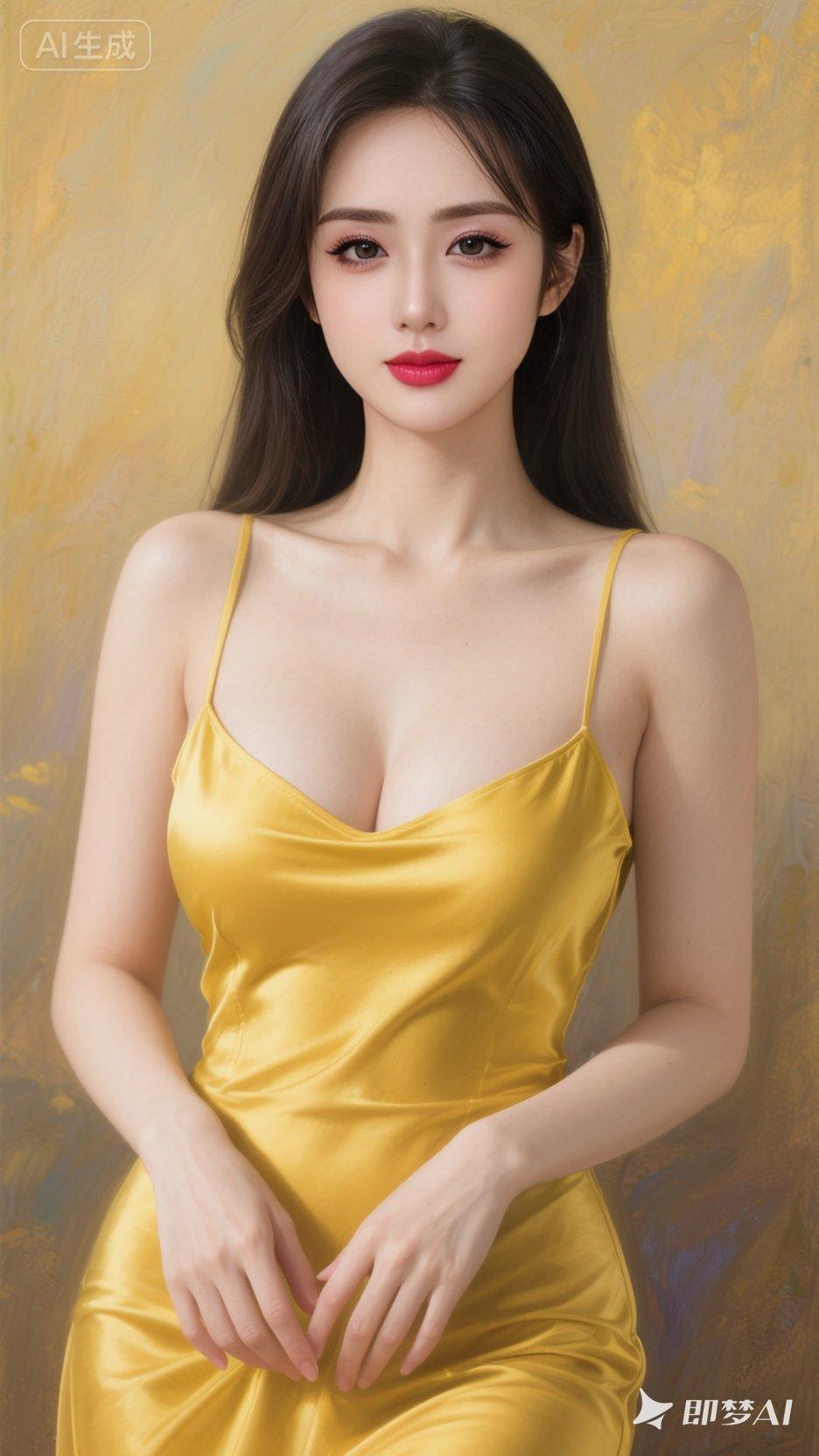 一位女子散发着优雅与甜美的气息。她的长发自然垂落,为整体造型添了几分柔美与风情。