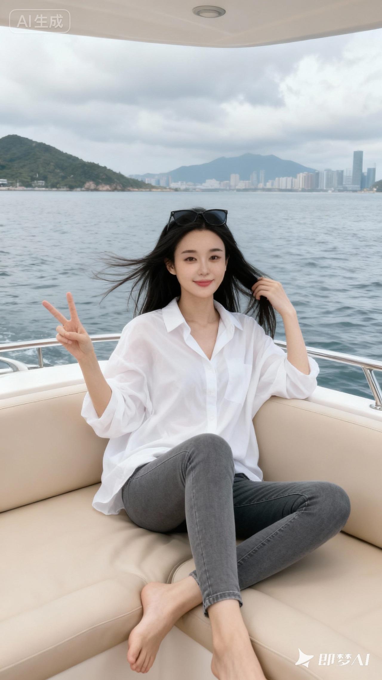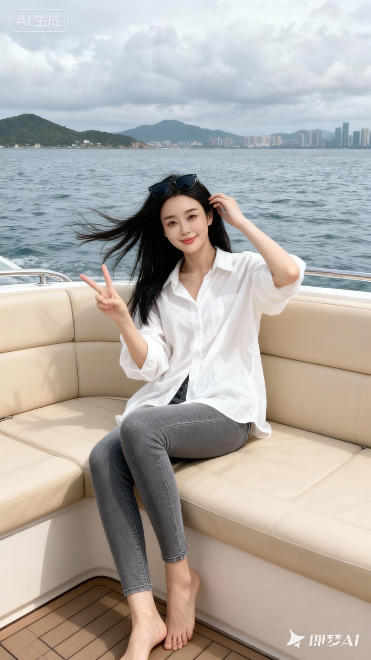 一位女子散发着优雅与甜美的气息。她的长发自然垂落,为整体造型添了几分柔美与风情。