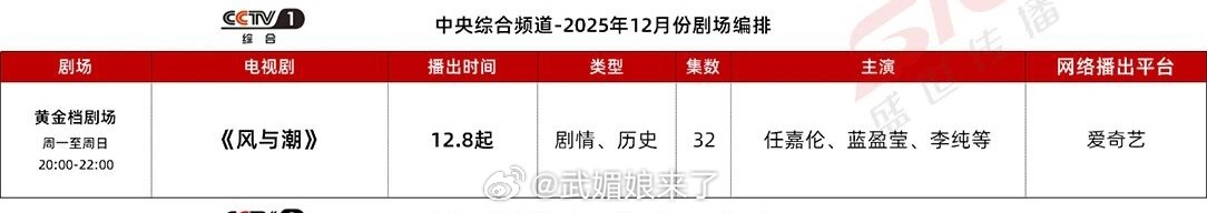 央一12月份排播,任嘉伦主演《风与潮》12月8日起开播 何贤要来啦✌️ 任嘉伦风与潮12月8号上线央一任嘉伦风与潮央一黄金档播出