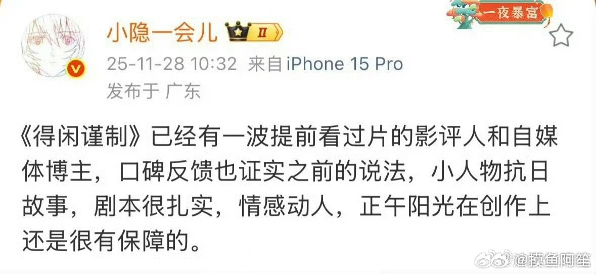 得闲谨制的影评人看片反馈好像很不错,获得了众多影评人的一致好评,可以开始期待得闲谨制提前看片反馈