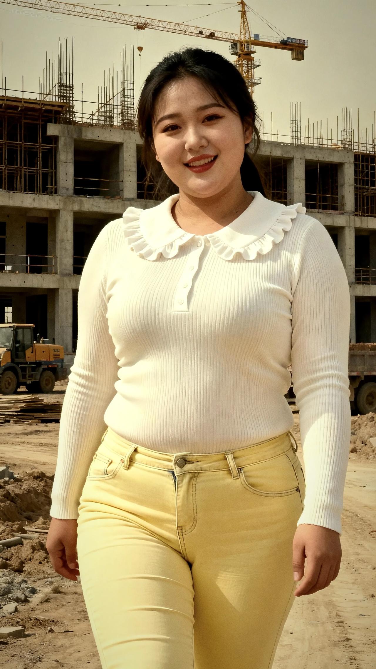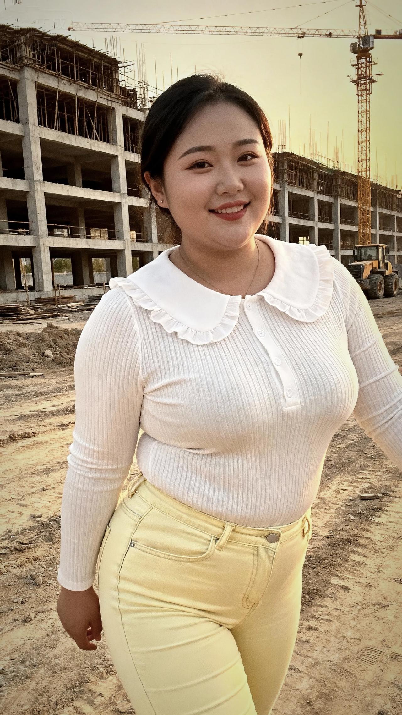 哥哥,我来工地看你了,一定要注意安全,多吃点饭,我还等着你娶我呢工地上的笑容我