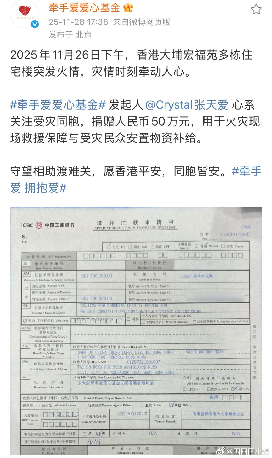 张天爱为香港捐款50万元 张天爱向香港捐款50万元,姐姐人美心善呢 张天爱向香港捐款50万元