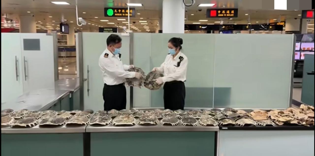 福建厦门,一名入境旅客携带两个大纸箱子入境,机检显示,里面的东西密度高,呈椭圆形,有骨骼纹路,开箱后的场景令人震惊! 工作人员从箱子里拿出几十个鳖的壳,足足有近60斤重,把查验处的3张桌子,摆得满满当当! 这些鳖的壳都进行了处理,看上去都是晒干了的,呈灰黑色,个头儿还挺大。 这人也太大胆了,明晃晃地携带禁止入境的东西,还带这么多,简直令人震惊。 这些鳖甲一般是入药的,咱国内其实野生的养殖的都有,这些人之所以要从国外偷运,还是为了牟利,低价购入高价卖出,利润高达数倍。 这些鳖的甲壳,属于动物的骨类,是不允许带入境的,如果是亚洲鳖、恒河鳖等濒危物种的壳,那罪过就更大了,不但要罚款,还得负刑责。