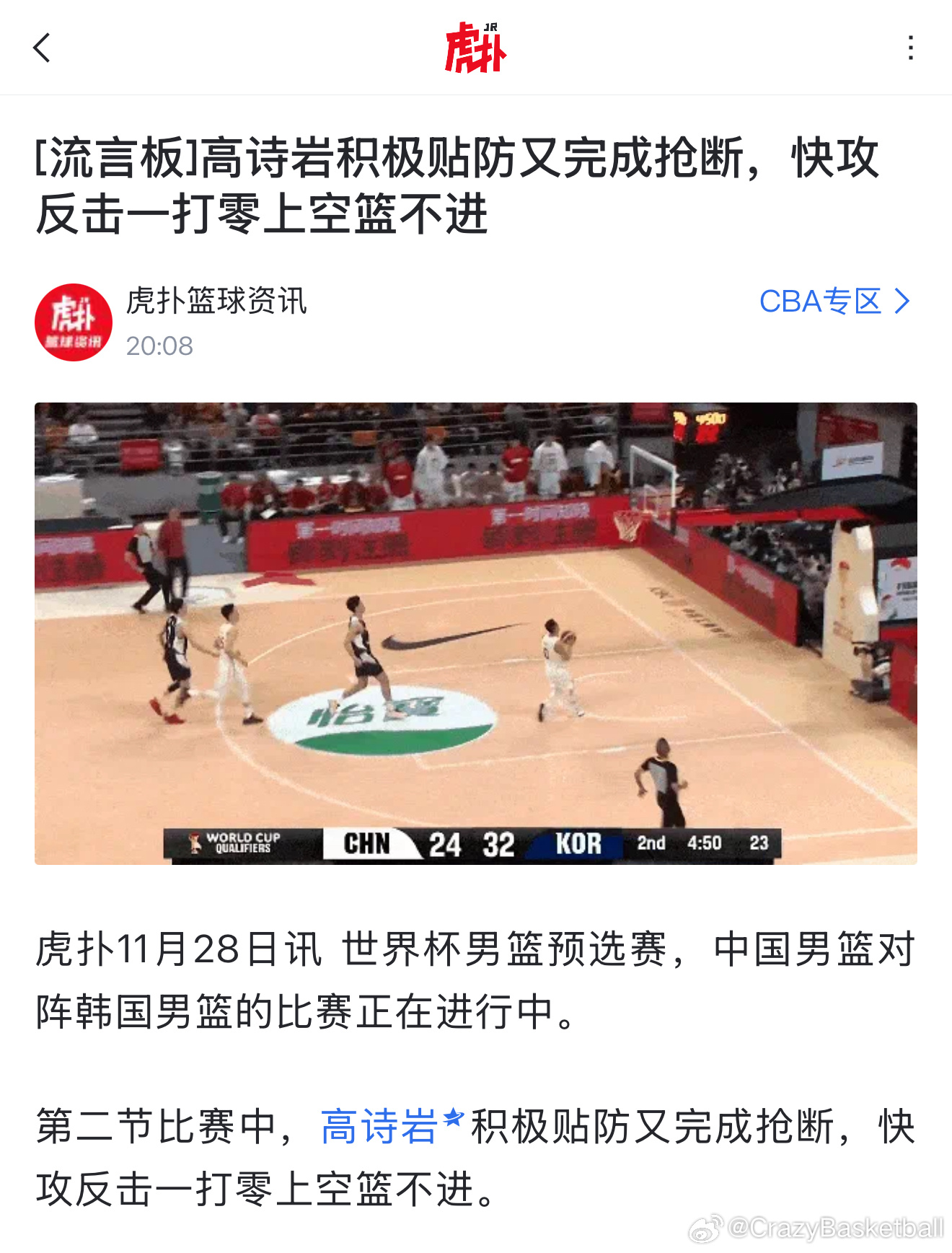 中国男篮vs韩国男篮虎扑的新闻标题学会了先扬后抑