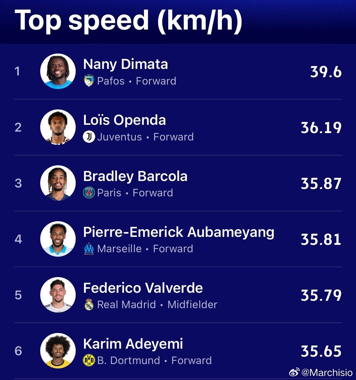 欧冠极限速度榜,奥蓬达排名第二,排名第一的是帕福斯前锋迪马塔,前西甲西班牙人名宿。可惜你妇现在少了那种可以传大长传的球员,不然奥蓬达感觉可以试试狗叼飞盘战术。尤文图斯欧冠联赛意甲联赛