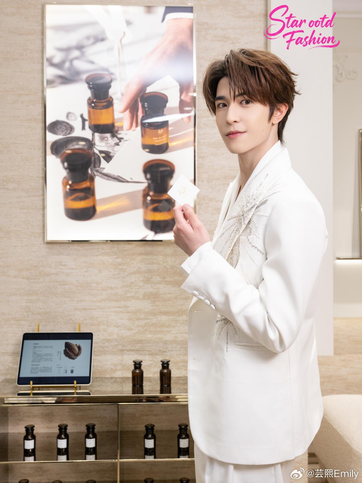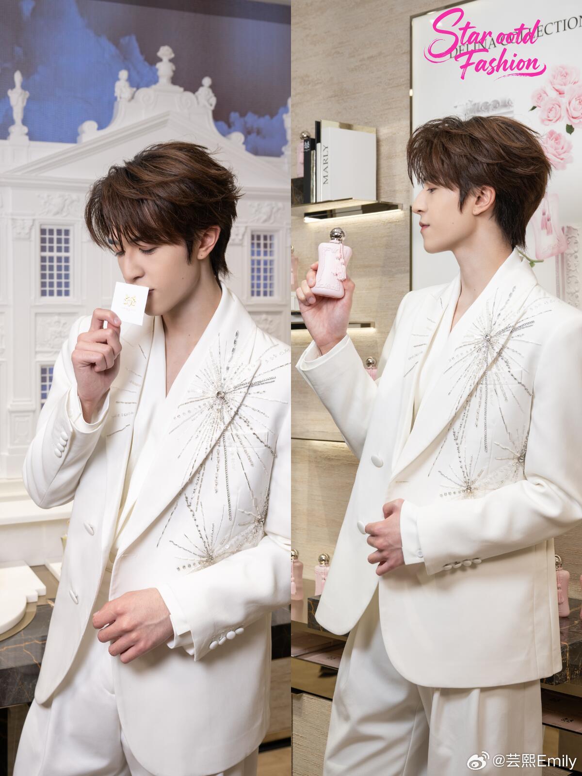 尹浩宇一袭白色钉珠刺绣西装亮相玛丽之香上海IFC国金中心精品店开业活动!整个人直接帅到发光!果然王子就是要喷贵贵的香水!这气质也太贵气了,简直就是从玛丽城堡里走出来的白马王子啊! 当然,比派派先抵达战场的,永远是他身上的香气~