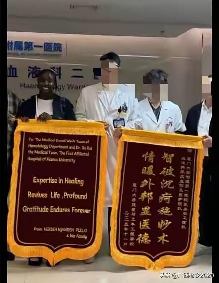医治好了非洲留学生,厦门大学附属医院获得了两幅珍贵的锦旗! 得了急性白血病的这名冈比亚留学生是不幸的,但又是幸运的,因为她是在中国得了这病,如果她还在自己的国家,估计只能在家等死,因为这个病死亡率很高,而且治疗费用很高。 而她在中国却不仅不用花钱治病,而且厦门大学附属的医疗水平在中国也是顶尖的,能医治好了她,她也花了不少钱制作了两副旗“智破沉疴施妙术,情暖外邦显德”分别用中英文表达了自己的对厦门大学附属医院的感谢,这两副锦旗也代表了中非友谊,相信这锦旗挂在厦门大学附属医院门口更有意义,毕竟得到外邦人士的赞扬。