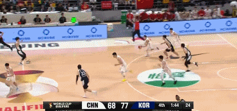中国男篮vs韩国男篮 尴尬,高诗岩三分卡篮脖子上……