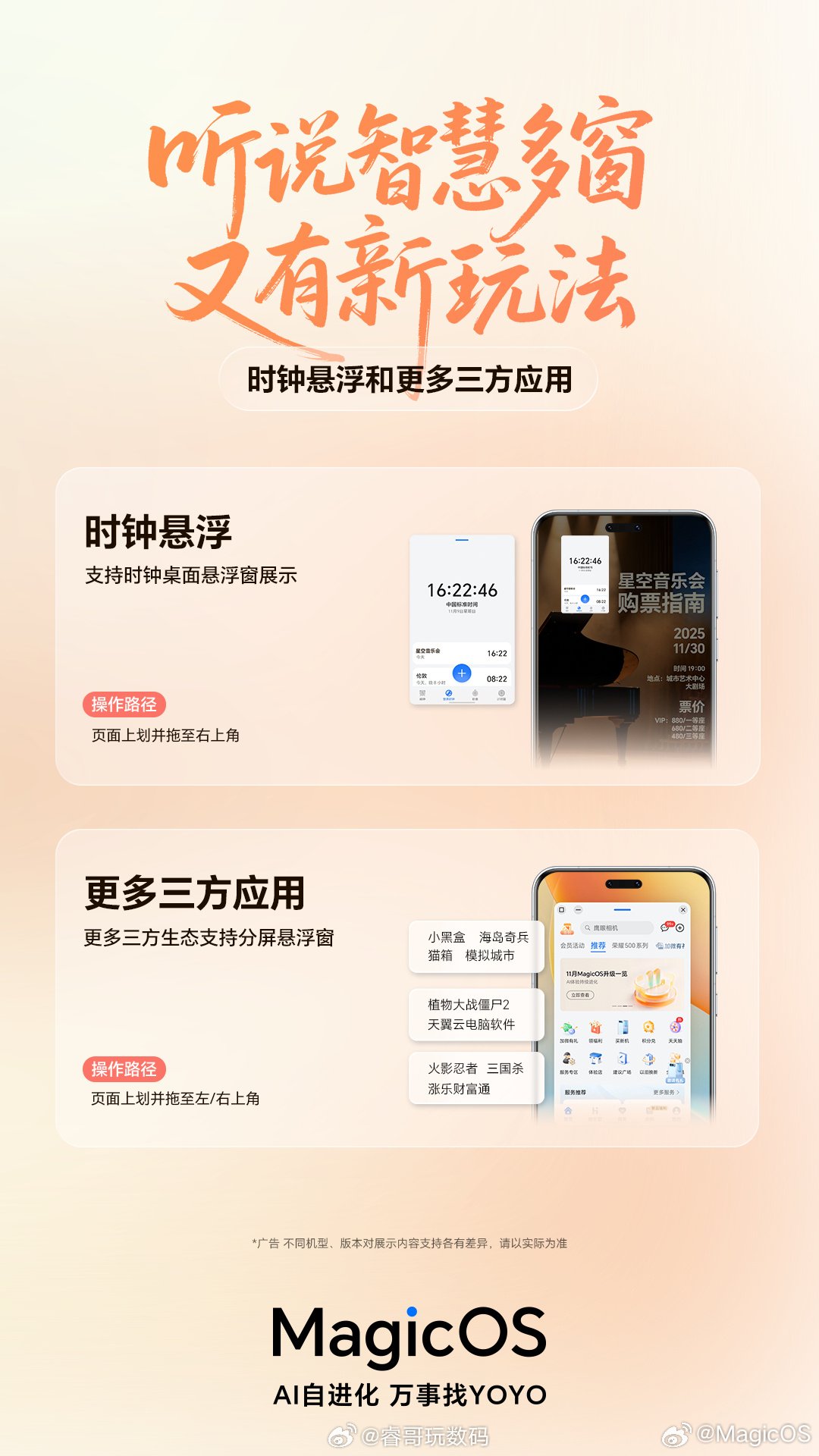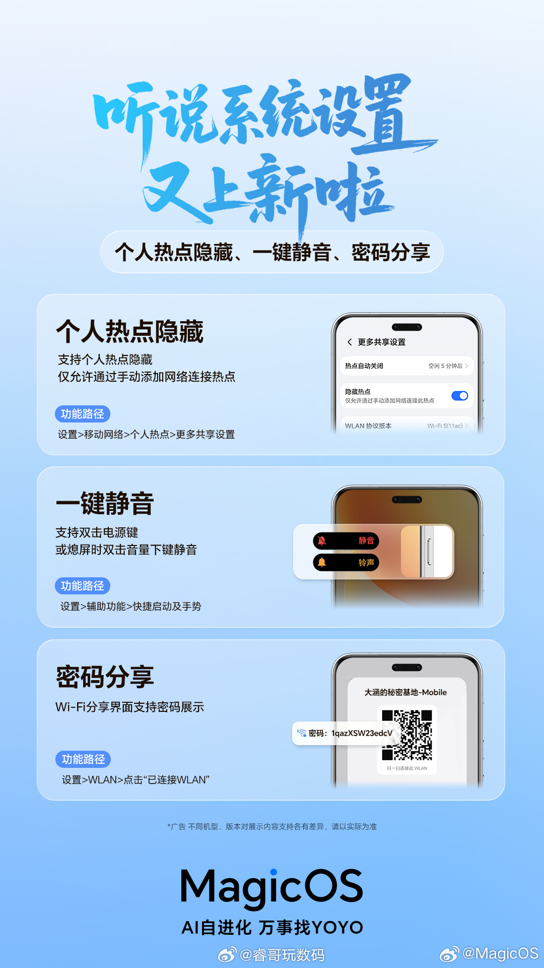 荣耀听劝,大家呼声很高的状态栏图标自定义、词条联想、时钟悬浮、个人热点隐藏、一键静音、WIFI密码分享等功能快速在MagicOS10落地 MagicOS月月新荣耀MagicOS