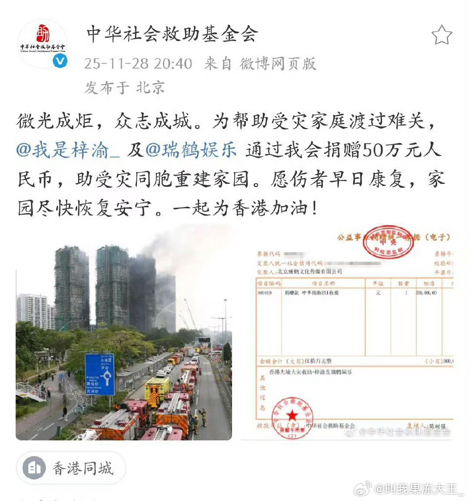 梓渝向香港捐款 50 万,正能量艺人,每次都在做公益,一直冲在前面梓渝向香港捐款50万元