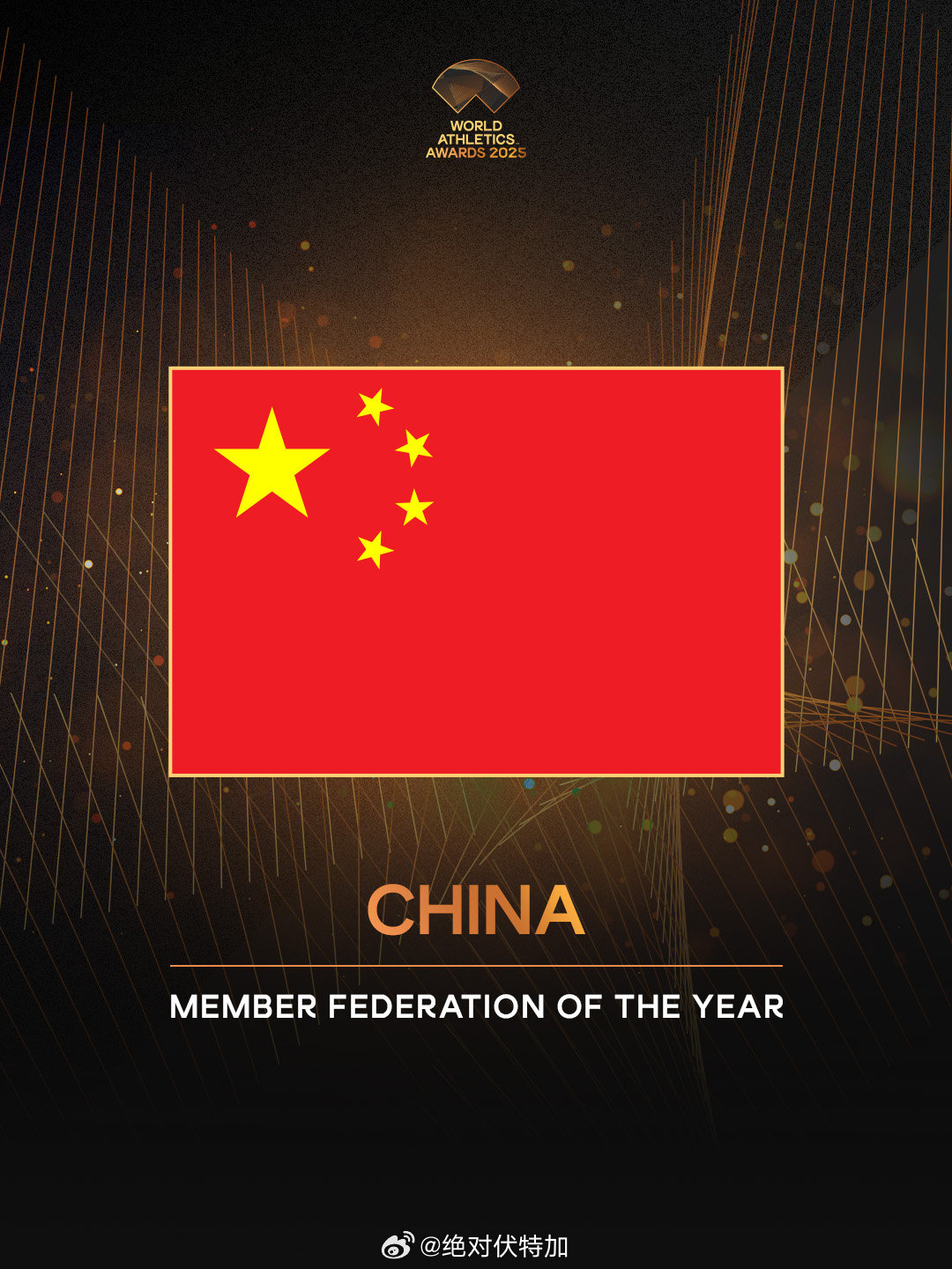 中国赢得2025世界田联成员奖 Member Federation Award中国田协的发言:2025年,南京世界田径室内锦标赛和广州世界田径接力赛的成功举办,向世界展现了中国专业的赛事组织能力和对田径运动的无限热情。展望未来,我们将全力协助和支持北京和扬州组委会筹备2027年在北京举行的世界田径大会 World Athletics Congress 和世界田径锦标赛 World Athletics Championships,以及在扬州举行的世界田径公路赛 World Athletics Road Running Championships。我们将珍惜这份荣誉,坚持不懈,与世界各地的同仁携手,共同推动全球田径运动的发展。”世界田联的评语:中国田径协会在2025年展现了在五个关键领域的进步:制度创新、赛事提升、青年发展、性别平等和商业合作。两项世界田径系列赛赛事——南京25世界田径室内锦标赛 World Athletics Indoor Championships 和广州25世界田径接力赛 World Athletics Relays——在中国成功举办,北京则承办了本赛季洲际巡回赛黄金赛 Continental Tour Gold meeting 的最后一站。此外,厦门和绍兴/柯桥分别举办了两站钻石联赛 Diamond League events,中国还迎来了三场白金标公路赛 Platinum Label road races 和一场世界竞走巡回赛黄金赛 World Race Walking Tour Gold event 的参赛选手。中国田径协会组织了数百场田径和公路赛事,总共吸引了超过600万名参与者。世界田径青少年田径接力环球挑战赛 World Athletics Kids' Athletics Relay Around the World Challenge 在广州落下帷幕,推出了加强运动员安全和权益保护的关键措施,女运动员和女官员的代表人数稳步增加,并举办了两期国家级裁判培训课程,共有346名官员获得了世界田径铜级认证 World Athletics Bronze Level certification。该联盟与中国移动合作,在品牌、技术和传播方面提升了众多顶级公路赛的水平,为协会与企业合作树立了新的典范。世界田联 中国田协 田径