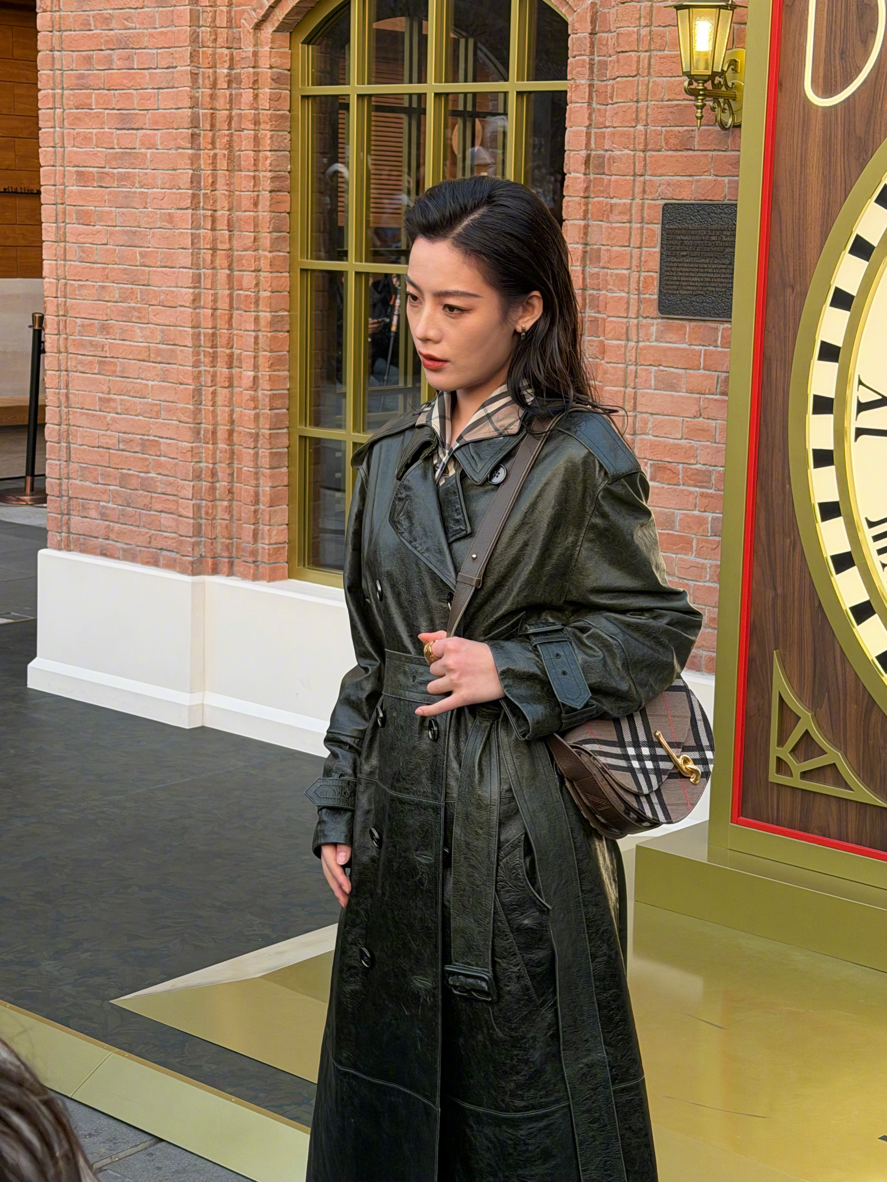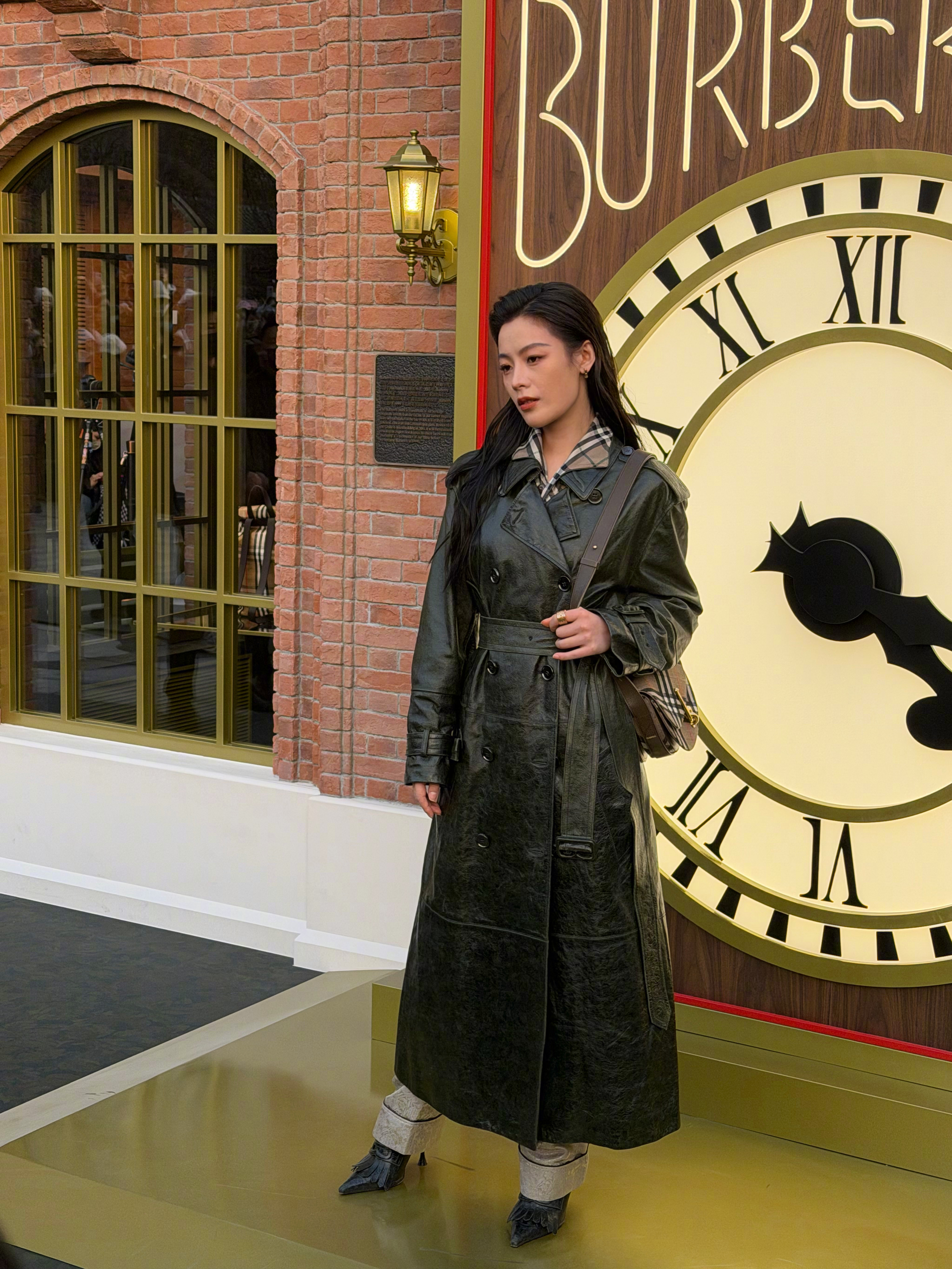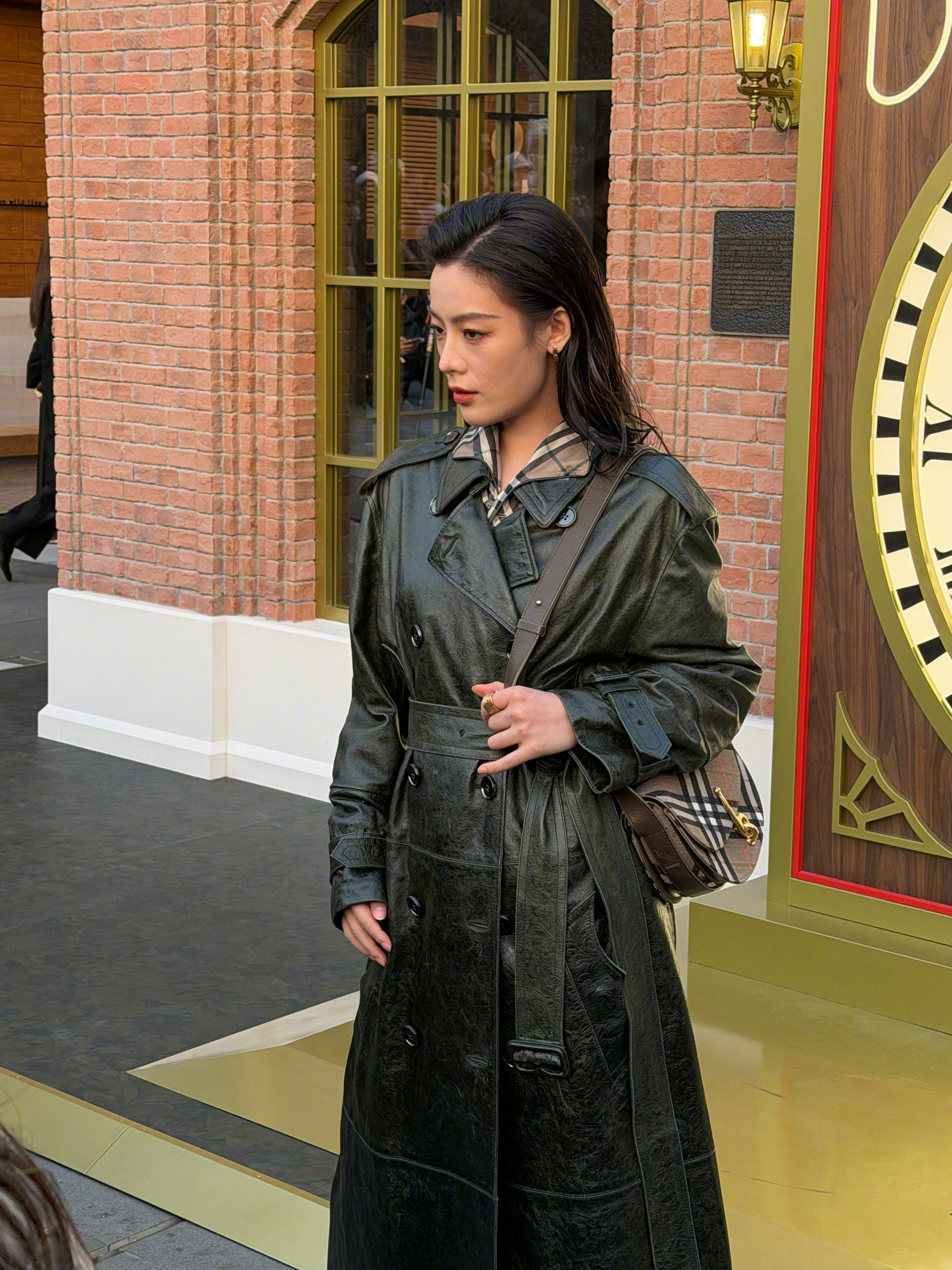 今日,现身北京出席Burberry 外套系列限时精品店开幕活动的陈丽君, 身穿绿色长款皮衣,内搭格纹衬衫,肩背经典格纹包,配搭利落披发,很简约知性的一身造型。时尚灵感解读时尚头排客风格大赏