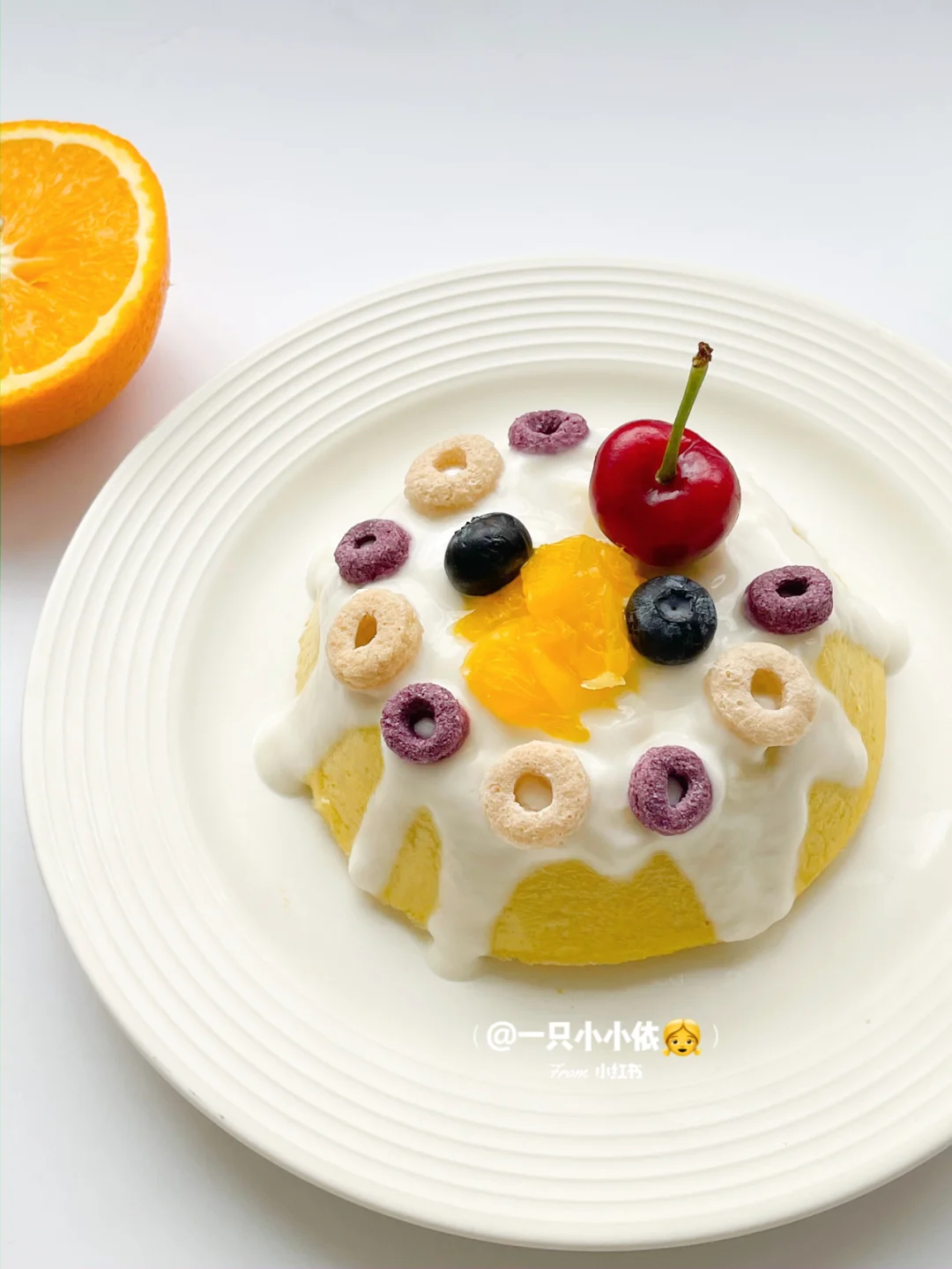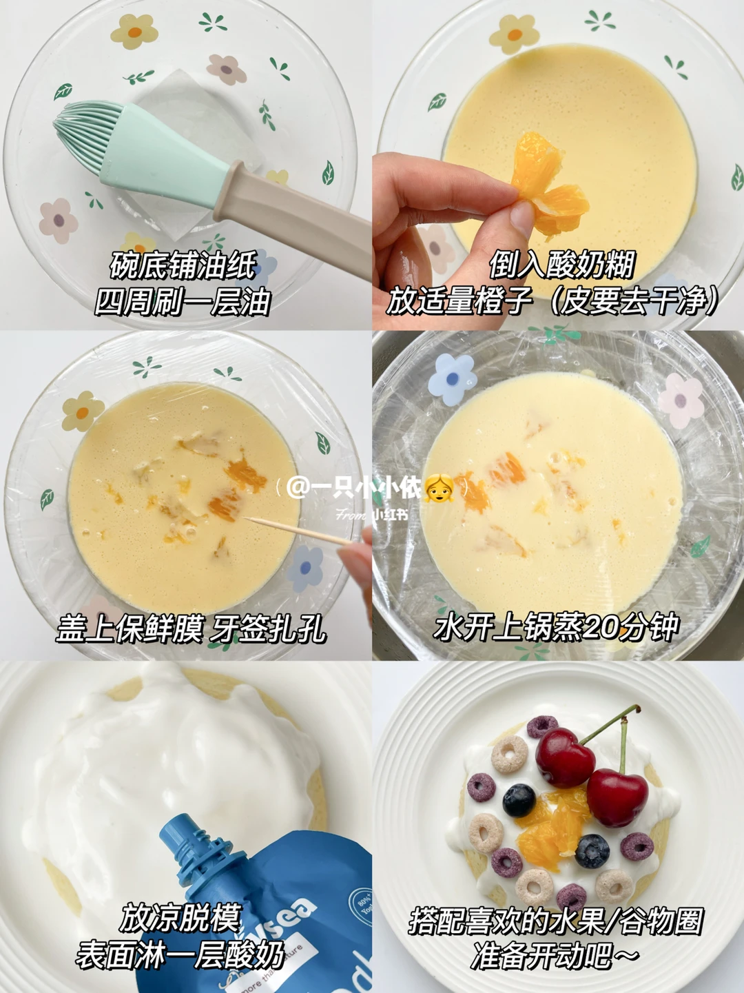 4⃣️放凉脱模,表面淋一层酸奶,搭配喜欢的水果或谷物圈等,准备开动吧!
