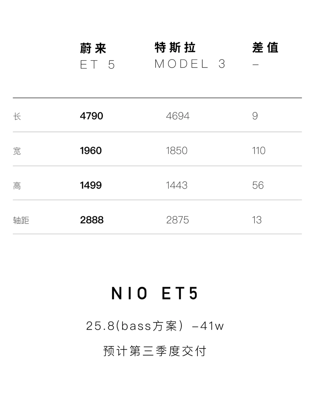 - 蔚来ET5-综合3.8分 更前沿的外观、更豪华的内饰 性能:3 外观:5 智能:4 尺寸:4 价格:3 MODEL 3-综合4分 虽然涨价但是性价比依旧很高,改款估计也快了 性能:4 外观:4 智能:4 尺寸:3 价格:5