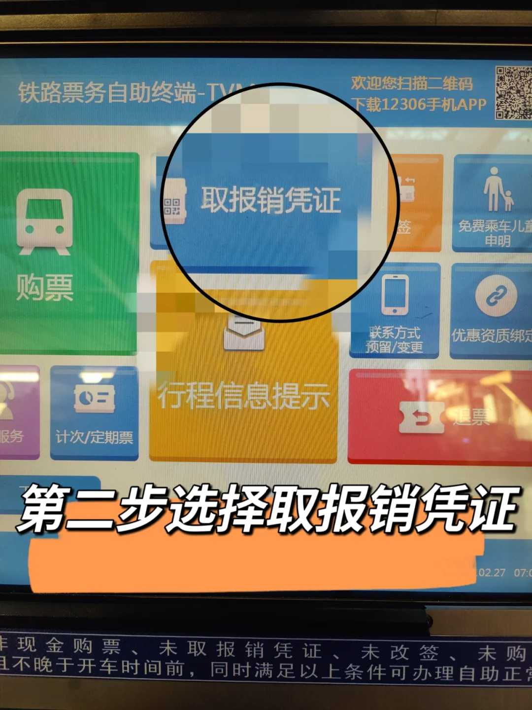 ✔第二步:〔蓝色车票是报销凭证〕选择取报销凭证项目🚥