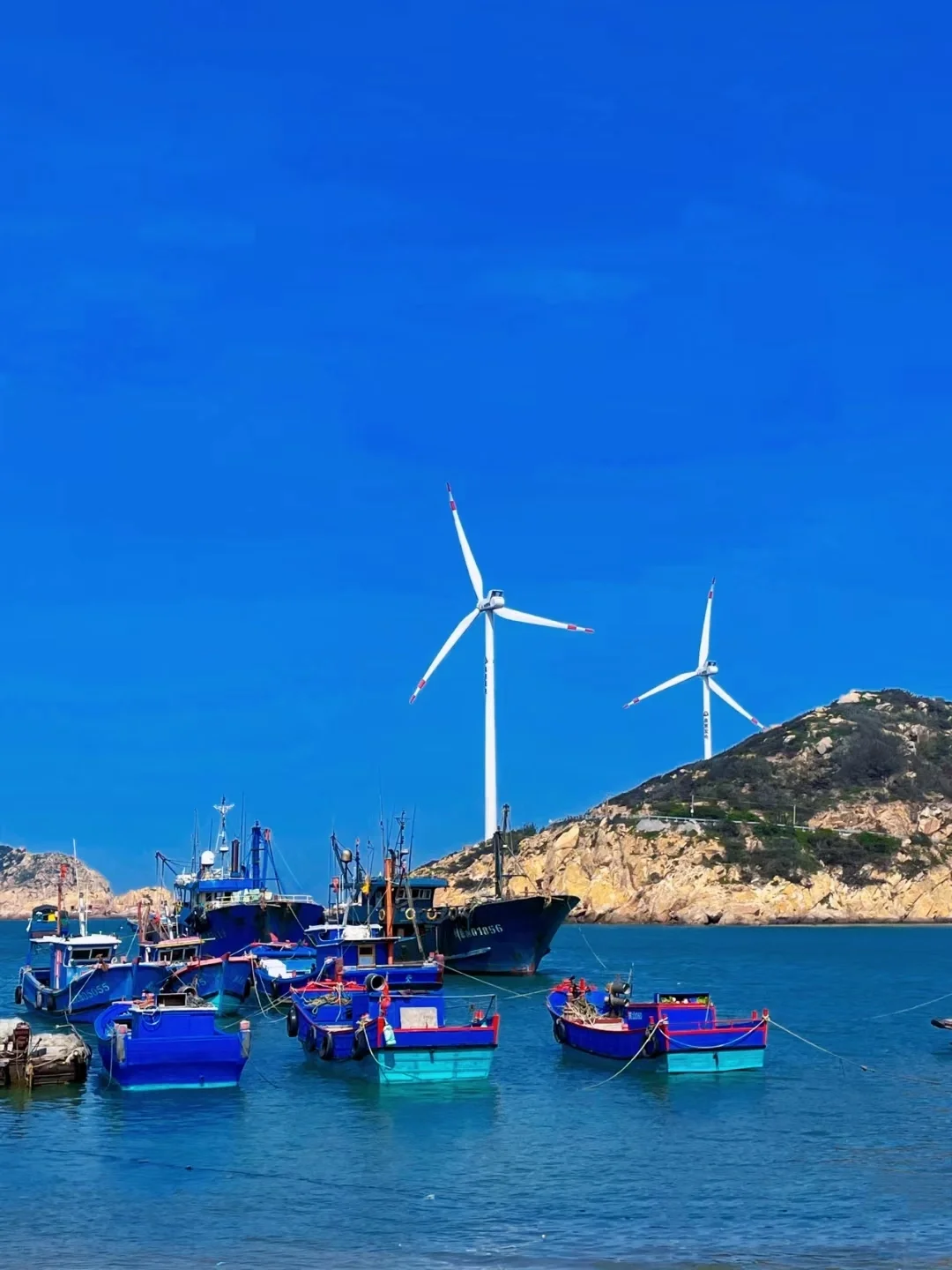 🎈风车岛:蓝色的大海,白色的风车,渔船点点,海风依依