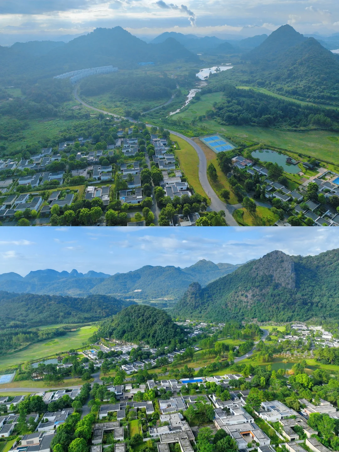 群山环抱的英德芸汐温泉度假别墅区就像是电影里的仙境传说开篇镜头