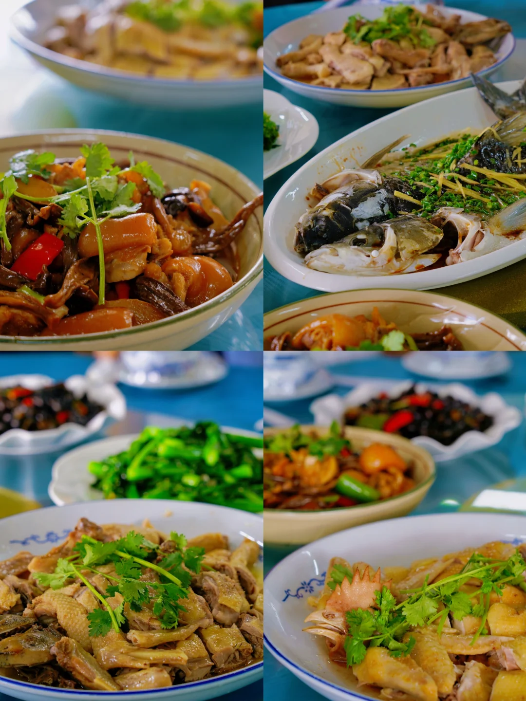 美食推荐:清香鸡,盐水鸭,南瓜蒸排骨,紫须炒山坑螺,清蒸山泉鲩鱼,葱油淋腐竹,鹿茸菇焖猪手,炒田园时菜