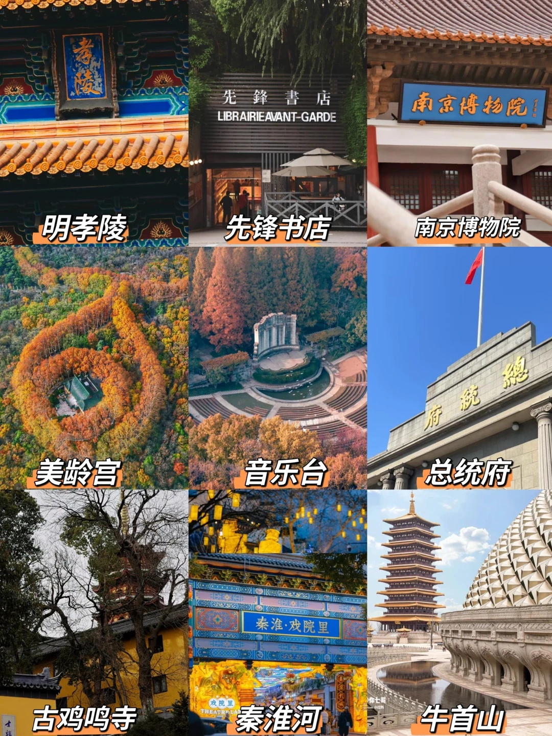 收下这份保姆级南京旅游攻略❗❗❗ 去哪都不迷路❗❗ 三天两夜400💰〔住宿100+路费120+吃饭200〕 ⚠️路线🚇🚇🚇 Day1:南京遇难同胞纪念馆——>夫子庙——>秦淮河 Day2:南京博物院——>总统府——>古鸡鸣寺——>明城墙——>玄武湖——>老门东 Day3: 钟山风景区美龄宫——>中山陵——>音乐台——>明孝陵——>石像路 ⚠️出行 南京南站:在地铁1号线比较便捷,离市区较近🚇 地铁:可通往各大景区,zfb刷地铁很方便🚇 ⚠️景点推荐 1.秦淮河〔晚上秦淮河上坐着游船🚢真的很美〕 2.鸡鸣寺〔鸡鸣寺三月樱花🌸要开啦,真的真的很美,在黄色和粉色对比中拍照技术真的不错〕 3.钟山景区〔看看中山陵缅怀先烈,去音乐台🎶看看成群鸽子飞舞吧〕 4.牛首山〔真的六十亿打造的太奢侈啦,金碧辉煌的让人瞠目结舌,真的非常惊艳〕 先锋图书馆〔真的很好看,适合出片哦〕 5.玄武湖〔在玄武湖感受南京的慢生活,看看紫峰大厦的美丽弧度〕 6.南京博物院〔真的太美了,文物精美绝伦,值得打卡的博物馆〕 ⚠️住宿 在新街口附近住宿,新街口是市中心楊方便的地铁中转站〔青旅五十💰〕 ⚠️美食🍜🍸 1鸭子:南京板鸭俗称“琵琶鸭”盐卤风干制成;盐水鸭皮白肉嫩,烤鸭外皮酥脆、肥而不腻; 2鸭血粉丝汤:比烤鸭更出门的南京美食 3汤包:做工精细,小巧玲珑,皮薄、馅多,口感极好 4梅花糕、皮肚面、老卤面、牛肉锅贴、桂花糖芋苗、赤豆元宵等 ⚠️南京热门美食清单 1.馨方园食府·市井老南京菜(六十多年老字号,上过舌尖) 2.腿老大·中式炸鸡(必吃榜小吃,南京人从小吃到大) 3.许阿姨糕团店(南京青团店NO.1) 4.李记清真馆(排队王) ⚠️美食街区🏫 1.夫子庙美食街:沿街荟萃了凉粉、鸭血粉丝汤、臭豆腐、汤包、皮肚面、桂花鸭等数十种南京风味小吃。 2.狮子桥美食街: 在鼓楼区湖南路上,也是南京的繁华地带之--,街上有很多长椅方便走走停停,这里的美食价格不贵又令人流连忘返 ㊗️:旅行嘛,最重要的就是住的开心、吃的开心、玩的开心啦!希望这份保姆级旅游攻略让你在南京拥有一次快乐的旅行☁️