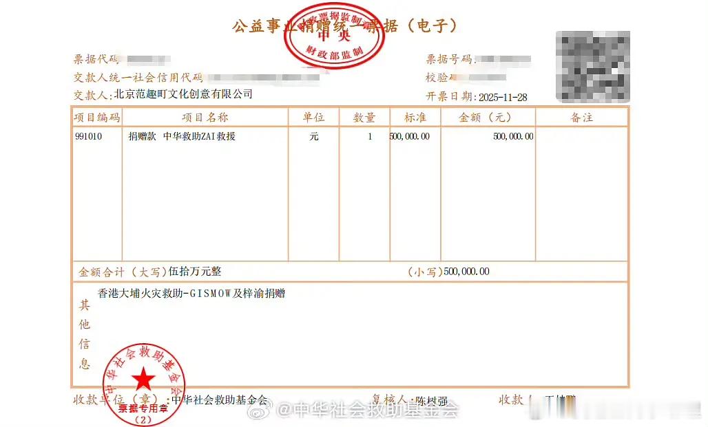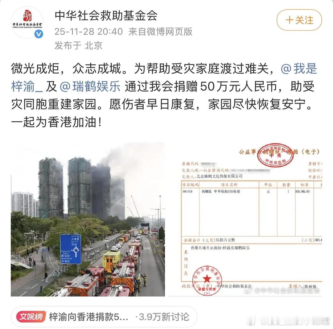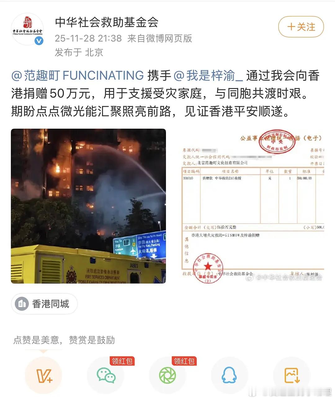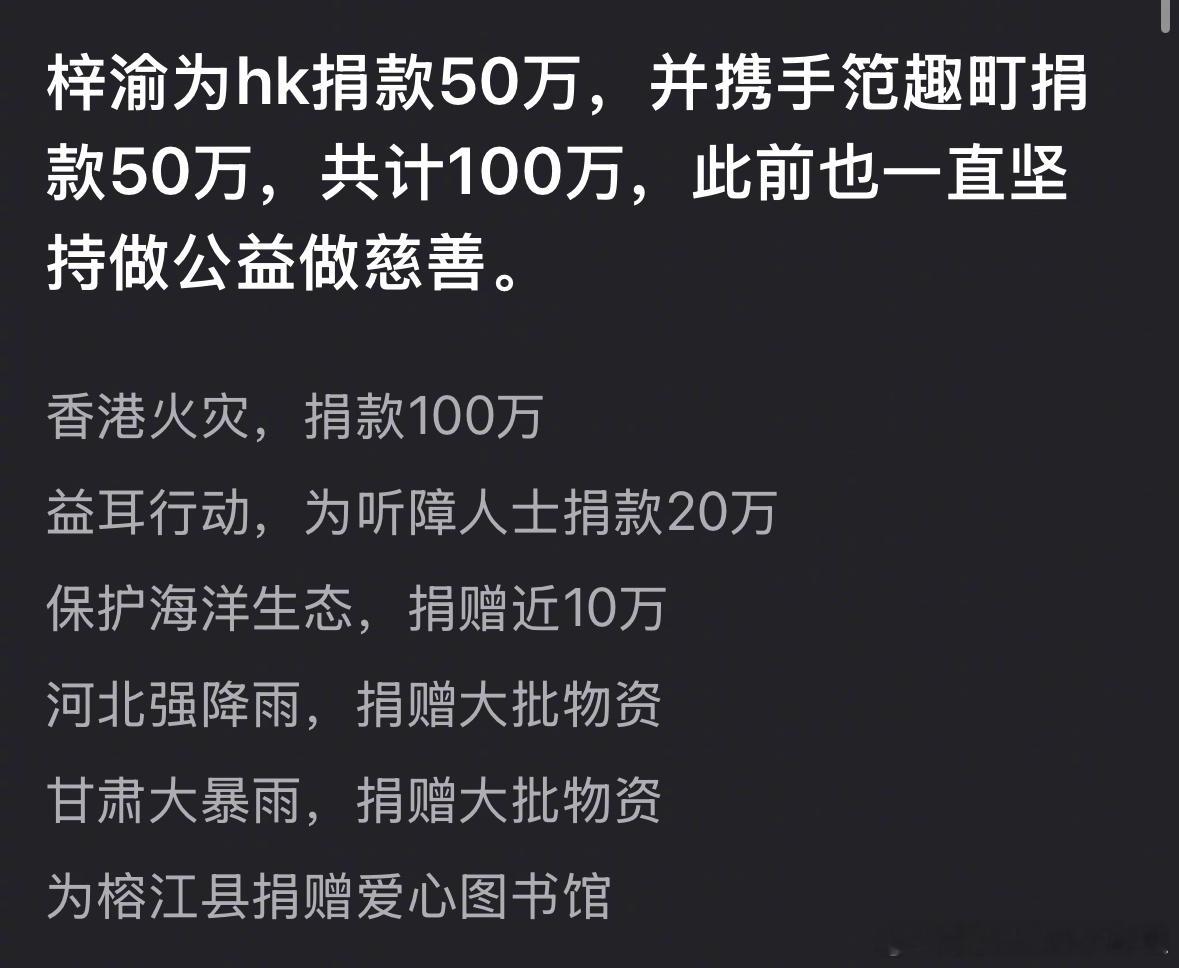 梓渝向香港捐款50万元 梓渝捐款履历👇