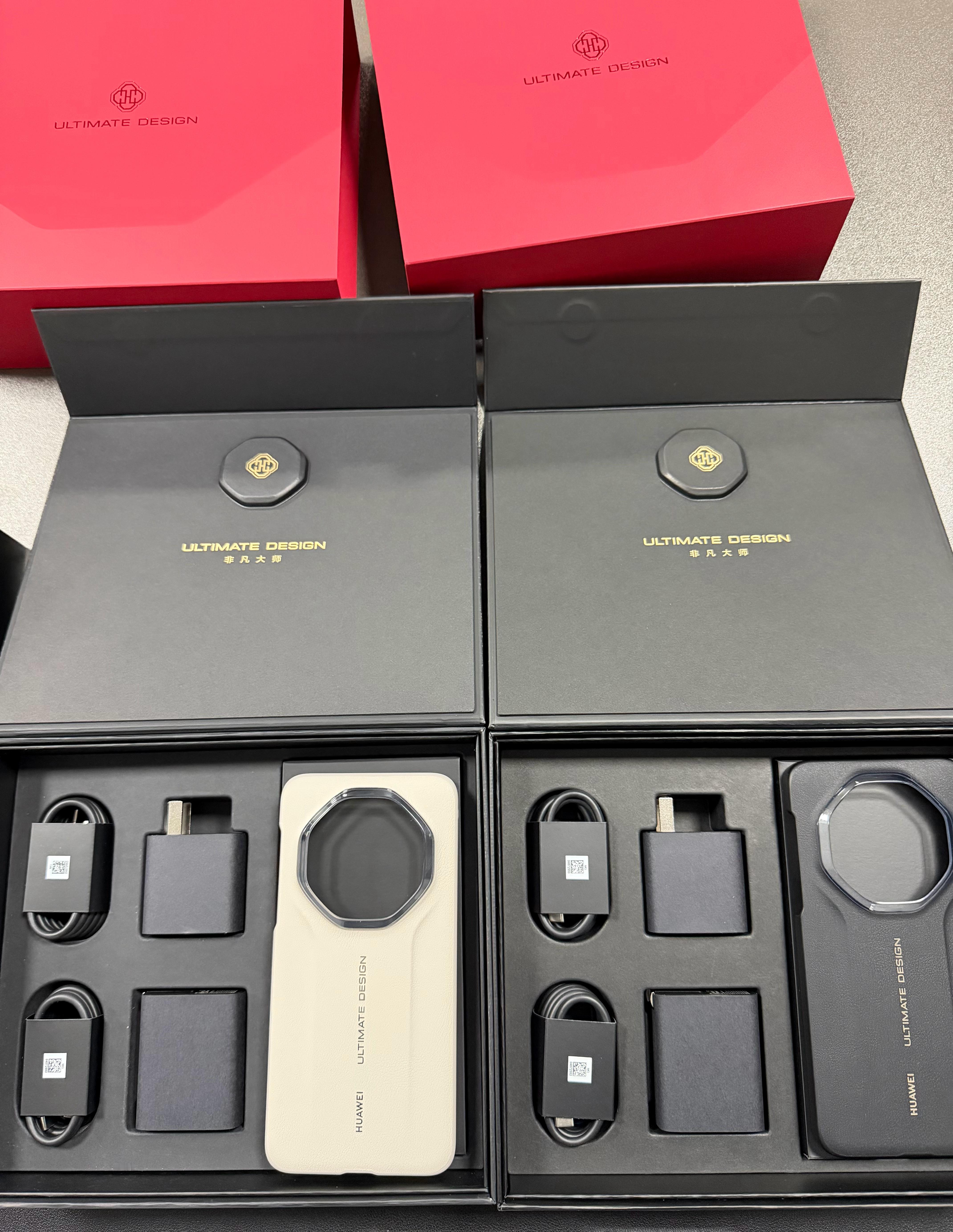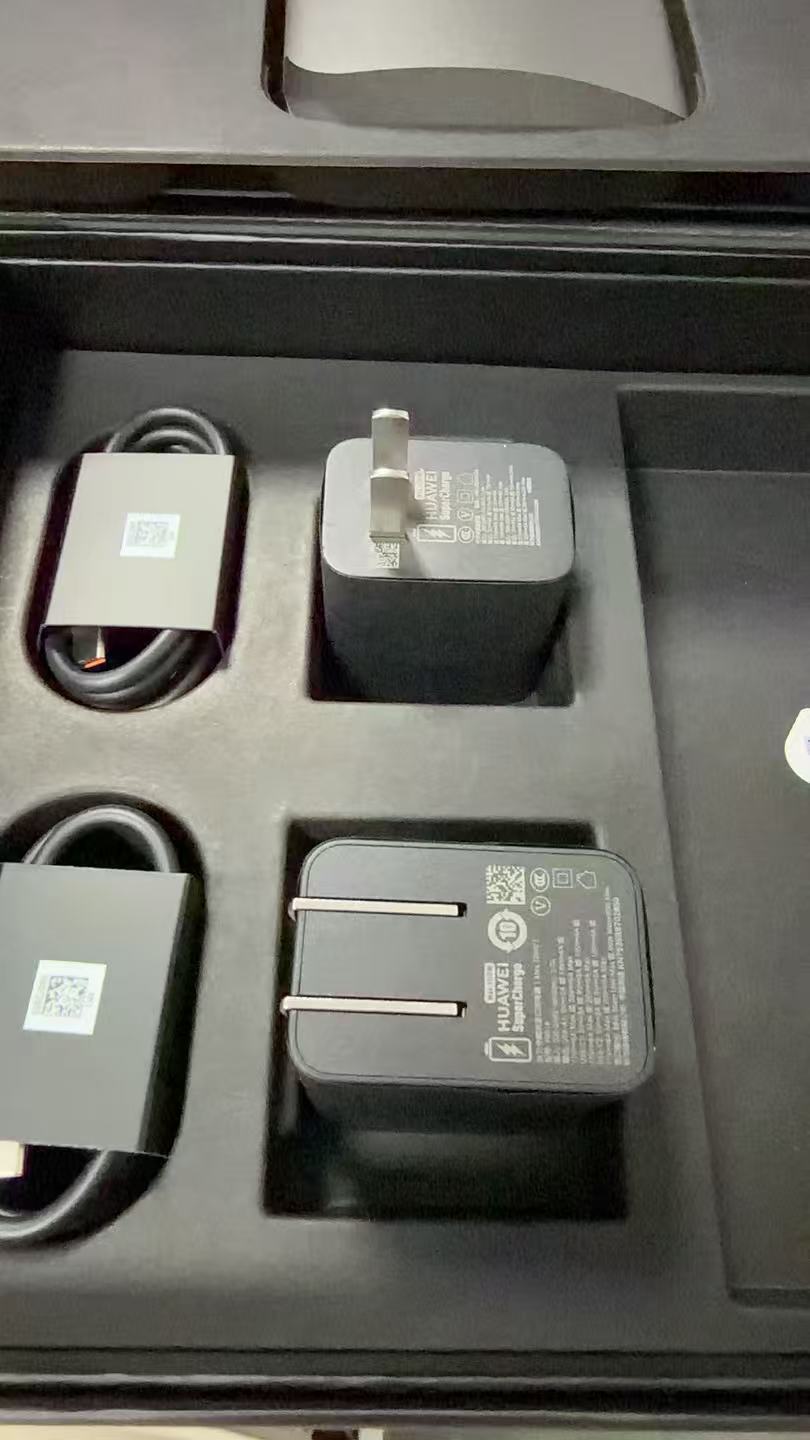 华为Mate80非凡大师,客户取机实拍,这次配件方面取消了原来的车载充电器,新增了一个双口可折叠快充头。