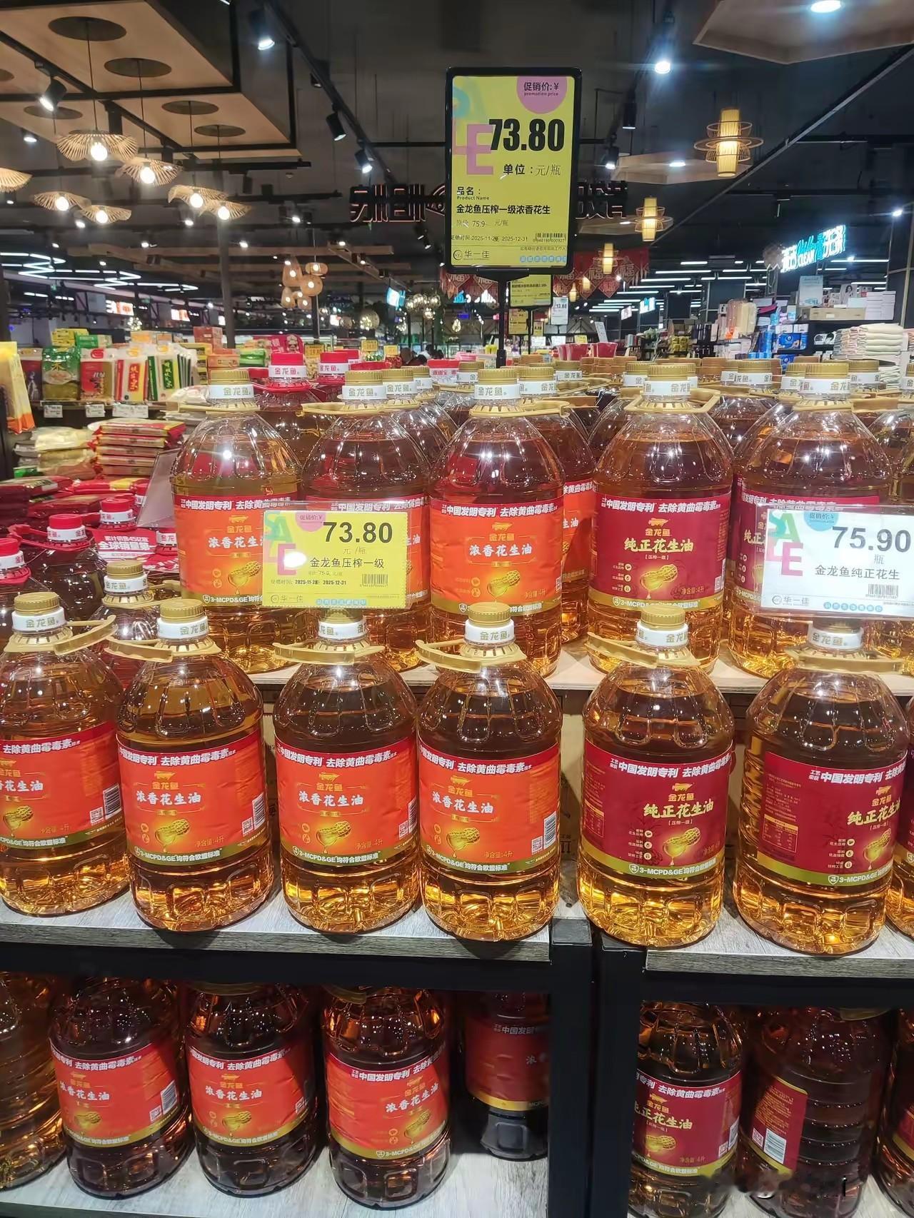 下午在超市看到,备受争议的金龙鱼产品非但没有下架,反而整齐地陈列在货架上。我向售
