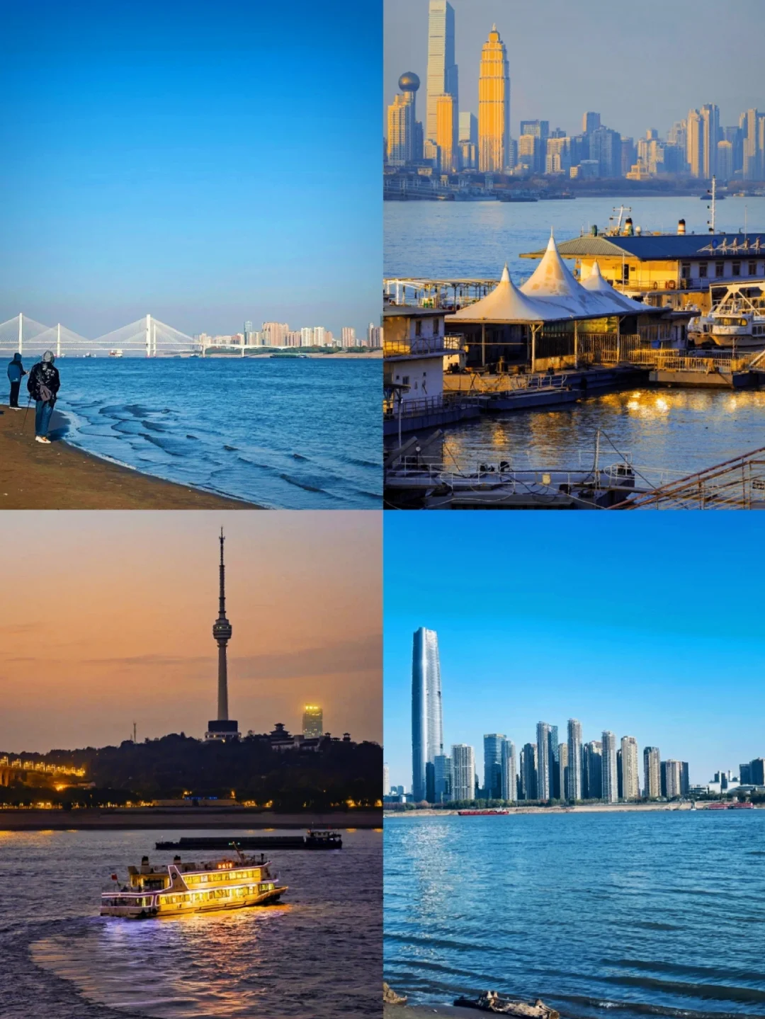 👉江岸:风吹起来很舒服,走走停停,看着武汉的霓虹灯闪烁