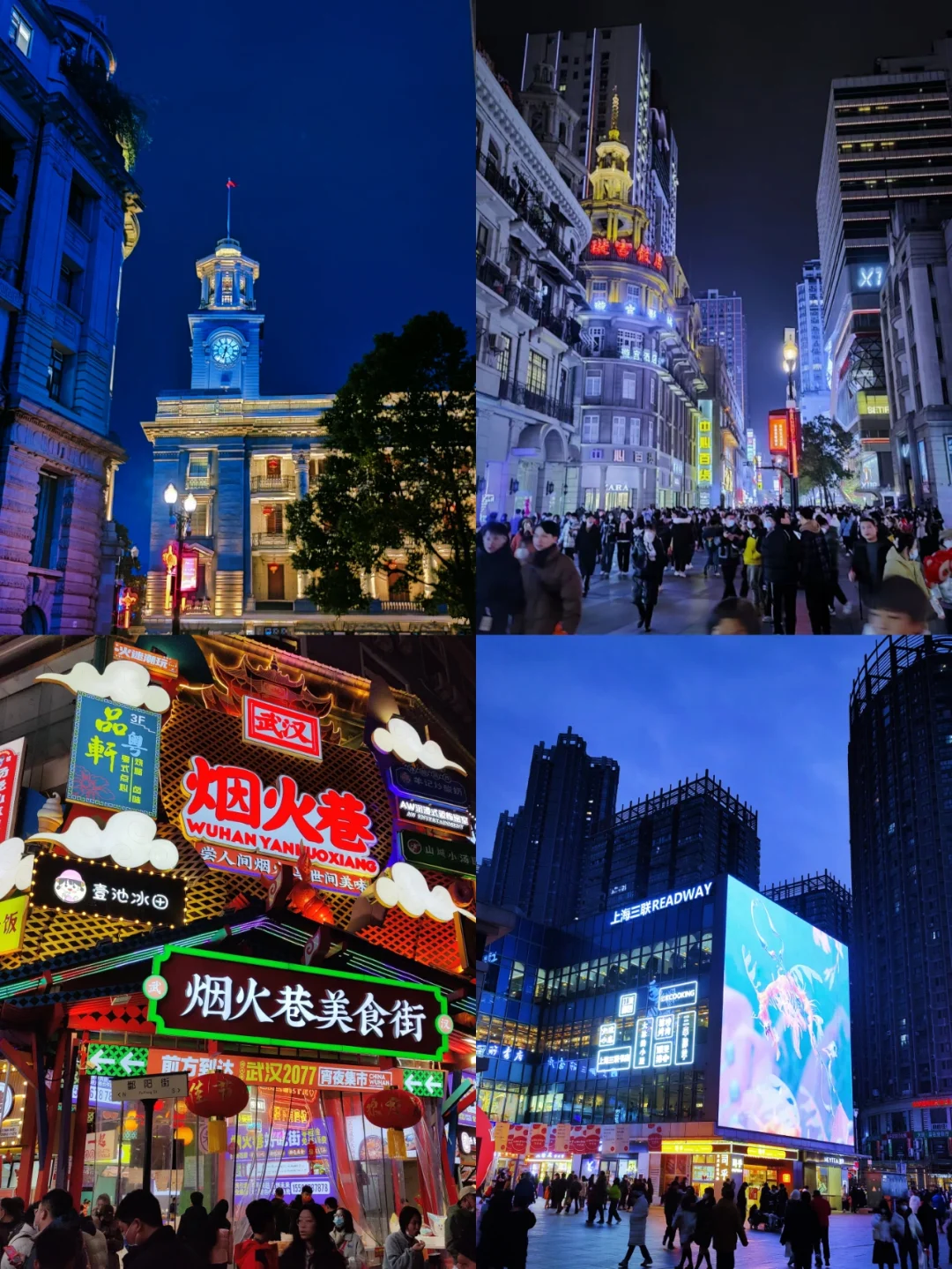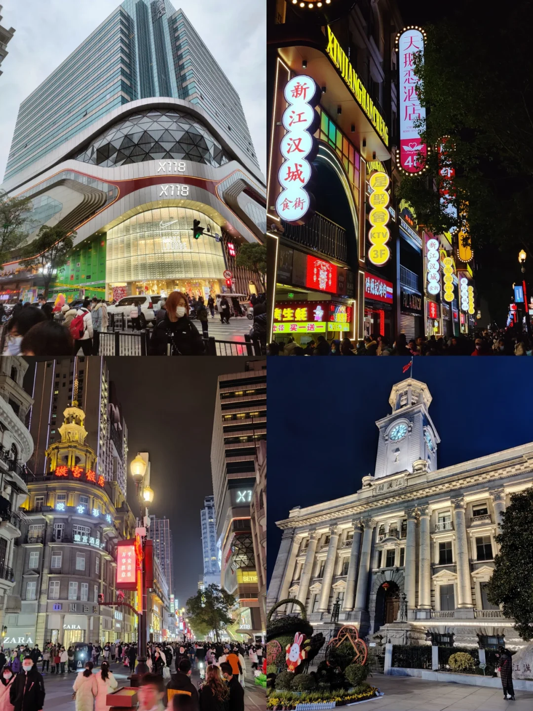 路线:江汉步行街——>🚲水塔街——>🚲江汉关——>🚲 武汉江岸夜景