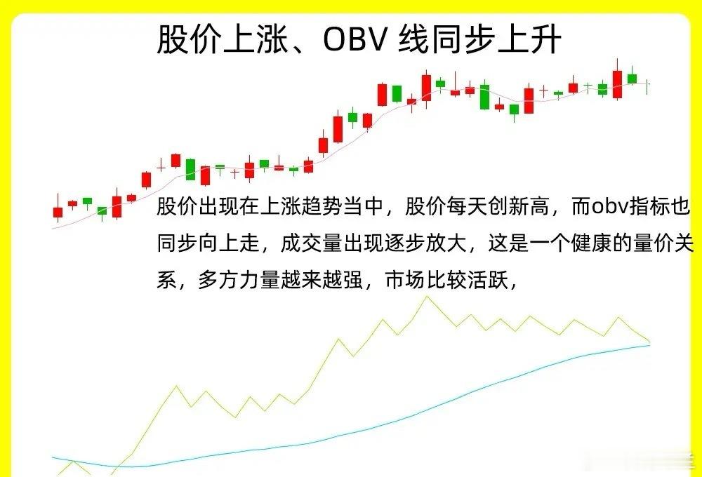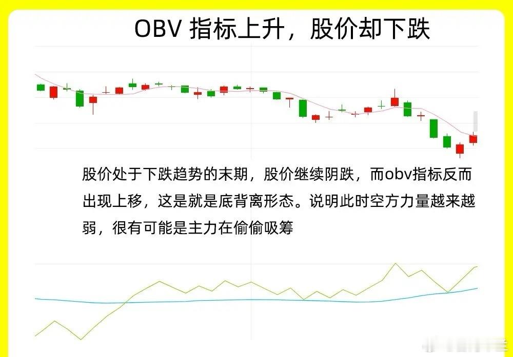 注意了!这是一个主力最害怕散户学会的一个指标,我们都是成交量对于技术分析来说特别重要,而obv指标却是成交量的高阶用法。在判断主力意图,市场情绪,看一眼就能知道。但是真正知道这个指标的人不多,能把他分享清楚的那就更少。所以如果也你看到这期内容,就一定要认真看完还是老规矩,点赞收藏或评论888支持一下,木兰每天分享炒股干货,以免以后想温习找不到了,今天我整理了obv能量潮的八种形态,看懂它,你就对指标有一定新的认识一、股价上涨、OBV 线同步上升股价出现在上涨趋势当中,股价每天创新高,而obv指标也同步向上走,成交量出现逐步放大,这是一个健康的量价关系,多方力量越来越强,市场比较活跃,二、股价下跌、OBV 线同步下降这种形态一般出现下降趋势当中,股价出现连续的下跌OBV指标的也从上方往下走,说明多方力量比较弱,空方力量比较强三、OBV 横向移动股价出现长期的横盘震荡,指标也出现横向移动,每天的波动都不大,说明此时的市场处于多空双方的平衡,股价长时间的在低位横盘,我们关注意义就不是很大,活跃度太低,市场关注度也低四、OBV 指标上升,股价却下跌股价处于下跌趋势的末期,股价继续阴跌,而obv指标反而出现上移,这是就是底背离形态。说明此时空方力量越来越弱,很有可能是主力在偷偷吸筹五、OBV 指标下降,股价上涨股价经过长时间的上涨,在上涨趋势的末期,股价继续创出新高,而obv指标反而出现下降,这是典型顶背离,指标和股价并没有出现同步,说明此时的多方力量开始变弱,主力很有可能开始出货了六、OBV 快速上升后高位横盘股价快速拉升以后,出现横盘整理,而obv指标也快速拉升后开始横盘,往往这是主力快速脱离成本区间以后,洗盘整理。这是主力的一个蓄势,如果是在高位,有很大涨幅空间就要小心,七、OBV 低位长期横盘后缓慢上升obv指标开始是在低位横盘,随后开始向上走,股价出现同步,说明此时开始主力是在吸筹,随后出现股价拉升八、OBV 线快速上升obv指标出现快速拉升,说明此时的成交量突然性的放大,说明主力此时很强势,成交量也会出现放大。此时市场热情比较强烈。好了,以上就是obv指标的八种形态,当然还有其实,比如小燕飞等等,下方我们配了案例图,记得文章和图片一起看,希望对大家有启发和帮助,也是最为基础的内容,一定吃透。我们下期内容再见