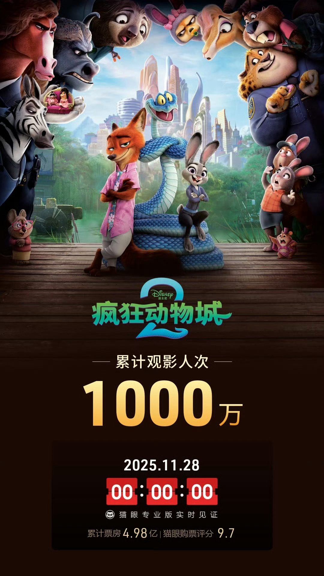疯狂动物城2观影人次破1000万疯狂动物城2观影人次破1000万