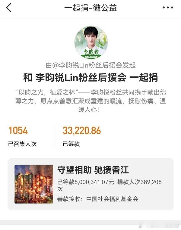 李昀锐lin明星捐款李昀锐为香港捐赠50万元,李昀锐粉丝也跟着捐款了,善良美好的人总是能吸引到同样善良美好的人~小森林跟着正能量偶像一起传递善意