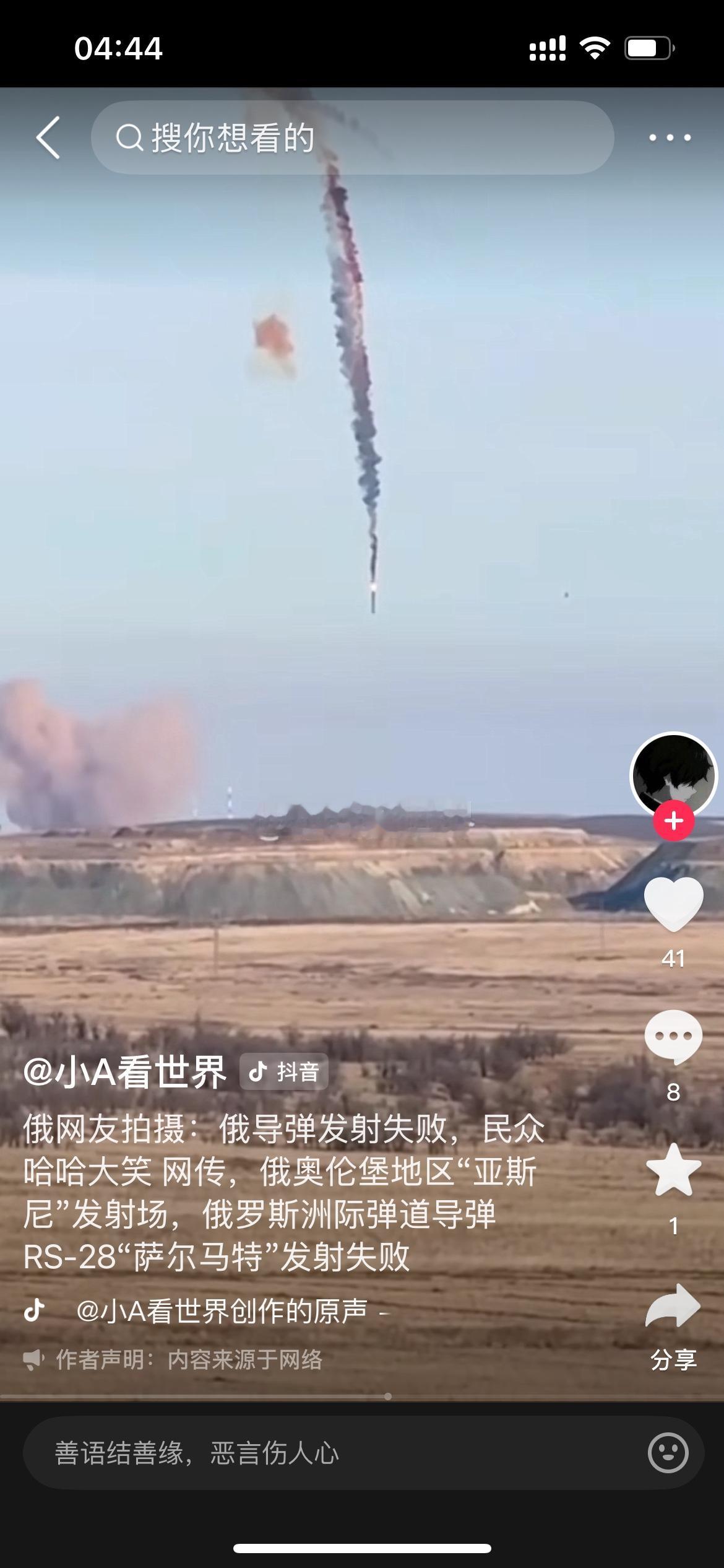 刚刚!俄罗斯洲际导弹发射失败,坠地爆炸! 俄罗斯奥伦堡附近亚斯尼发射场一枚洲际导弹试射失败,随后发生爆炸。从爆炸火焰颜色判断为液体燃料,推测该导弹可能是“撒旦”。虽说也存在极小可能是萨尔马特,但它需要特定发射设备,无法直接适配R - 36M2的发射井,所以大概率不是。 从视频中可见,导弹离开发射台瞬间便出现严重姿态问题,估计是制导系统、发动机矢量作动系统或者发动机本身存在问题。 实际上,2024年9月“萨尔马特”试射也曾失利,在发射井内爆炸,还对发射场造成了破坏。 近期,俄罗斯发生多起导弹失控事件,包括11月20日KH - 101巡航导弹坠海、“铠甲 - S1”防空导弹误击本土建筑等。其中,KH - 101导弹残骸显示发动机舱破损、制导模块失灵,而“铠甲 - S1”导弹误击事件引发外界对其可靠性的质疑。不过,试射失败并不意味着项目就此终结,俄罗斯核武体系凭借老型号导弹依旧实力强劲。