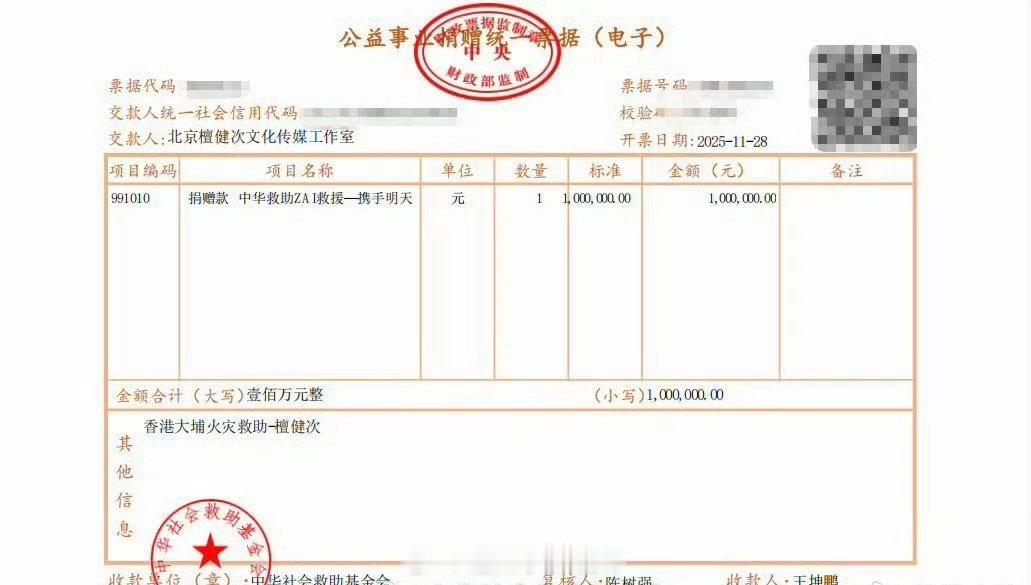 檀健次为香港捐赠100万元,用于伤者医疗、家庭安置与生活重建。