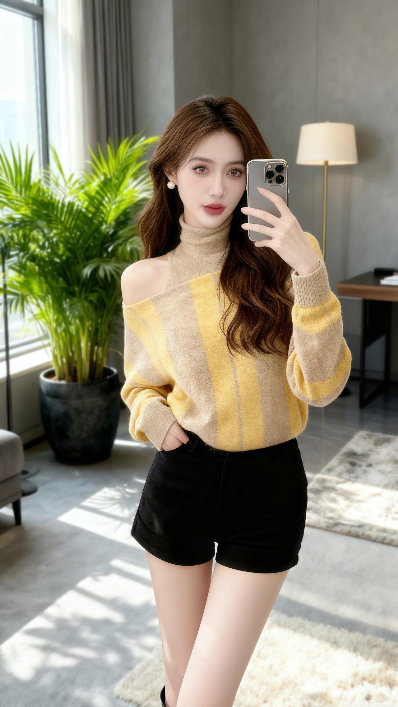 秋冬多巴胺穿搭拿捏!这款黄条纹高领露肩针织衫太吸睛~温柔黄调显白提气色,经典条纹自带时尚感,高领设计保暖护颈,单侧露肩小心机解锁慵懒性感,版型贴合身形不臃肿。面料柔软亲肤,单穿亮眼吸睛,叠穿层次感拉满,日常出街、约会通勤都合适,穿上洋气又减龄,轻松穿出秋冬时髦感~ 多巴胺黄色条纹毛衣 秋冬露肩针织衫新款 高领洋气上衣推荐 今年流行毛衣穿搭